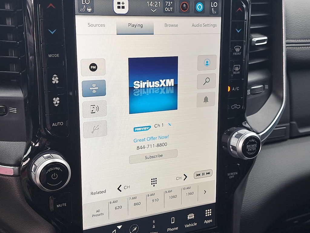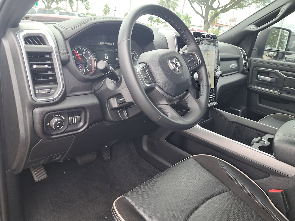 This Vehicle comes equipped with: Laramie Level 1 Equipment Group (12" Touchscreen Display, 4G LTE Wi-Fi Hot Spot, Alexa Built-In, Apple CarPlay, Auto Adjust In Reverse Exterior Mirrors, Auto Dim Exterior Mirror, Auto High Beam Headlamp Control, Auto Power-Folding Mirrors, Auto-Dimming Exterior Passenger Mirror, Blind Spot & Cross Path Detection, Center Hub, Chrome Exterior Mirrors, Connected Travel & Traffic Services, Connectivity - US/Canada, Disassociated Touchscreen Display, Exterior Mirrors Courtesy Lamps, Exterior Mirrors w/Heating Element, Exterior Mirrors w/Memory, Exterior Mirrors w/Supplemental Signals, Foam Bottle Insert (Door Trim Panel), For Details, Visit DriveUconnect.com, For More Info, Call 800-643-2112, Forward & Reverse Utility Lights, Front LED Fog Lamps, Global Telematics Box Module (TBM), Google Android Auto, GPS Antenna Input, GPS Navigation, HD Radio, Integrated Voice Command w/Bluetooth, LED Reflector Headlamps, LED Tail Lamps, Mirror Power Heat Fold Memory Tele, Mirror Running Lights, Off-Road Information Pages, ParkSense Front/Rear Park Assist System, Power Adjust Mirrors, Power Adjustable Convex Aux Mirrors, Power Adjustable Pedals w/Memory, Power Telescoping Mirrors, Radio: Uconnect 5 Nav w/12.0" Display, Rain Sensitive Windshield Wipers, Rear Power Sliding Window, Rear Window Defroster, Remote Tailgate Release, Selectable Tire Fill Alert, SiriusXM Radio Service, SiriusXM w/360L, Trailer Tow Pages, and Wheels: 18" x 8.0" Polished Aluminum), Protection Group (Tow Hooks), Quick Order Package 2HH Laramie, Sport Appearance Package (20" x 8.0" Polished Aluminum Wheels, Black Interior Accents, Body Color Grille Surround, Sport Decal, and Sport Performance Hood), 10 Speakers, 115V Auxiliary Rear Power Outlet, 2 Way Rear Headrest Seat, 220 Amp Alternator, 3.73 Axle Ratio, 4 Way Front Headrests, 4-Wheel Disc Brakes, 5th Wheel/Gooseneck Towing Prep Group, ABS brakes, Active Noise Control System, Air Conditioning, Alloy wheels, AM/FM radio: SiriusXM with 360L, Anti-Spin Differential Rear Axle, Apple CarPlay/Android Auto, Automatic temperature control, Brake assist, Bumpers: body-color, Compass, Delay-off headlights, Driver door bin, Driver vanity mirror, Dual front impact airbags, Dual front side impact airbags, Electronic Stability Control, Electronically Controlled Throttle, Front anti-roll bar, Front Center Armrest w/Storage, Front dual zone A/C, Front reading lights, Front Seat Back Map Pockets, Fully automatic headlights, Garage door transmitter, Heated door mirrors, Heated Front Seats, Heated front seats, Heated Steering Wheel, Heated steering wheel, High Back Seats, Illuminated entry, Leather steering wheel, Leather Trim 40/20/40 Bench Seat, Low tire pressure warning, Manufacturer's Statement of Origin, Navigation System, Occupant sensing airbag, Outside temperature display, Overhead airbag, Overhead console, Panic alarm, ParkView Rear Back-Up Camera, Passenger door bin, Passenger vanity mirror, Power 2-Way Driver Lumbar Adjust, Power 2-Way Passenger Lumbar Adjust, Power Adjust 8-Way Driver Seat, Power Adjust 8-Way Front Passenger Seat, Power door mirrors, Power driver seat, Power passenger seat, Power steering, Power windows, Radio data system, Rear 60/40 Folding Seat, Rear anti-roll bar, Rear reading lights, Rear seat center armrest, Rear step bumper, Remote keyless entry, Security system, Speed control, Split folding rear seat, Steering wheel mounted audio controls, Tachometer, Tilt steering wheel, Tip Start, Traction control, Trip computer, Turn signal indicator mirrors, Variably intermittent wipers, and VoltmeteR.