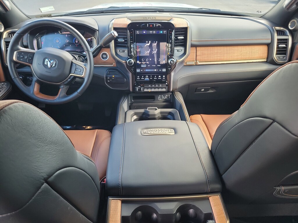 THIS VEHCILE INCLUDES THE FOLLOWING OPTIONS AND FEATURES: Longhorn Level 1 Equipment Group (12" Touchscreen Display, 17 Speaker harman/kardon Premium Sound, 4G LTE Wi-Fi Hot Spot, Alexa Built-In, Apple CarPlay, Blind Spot & Cross Path Detection, Connected Travel & Traffic Services, Connectivity - US/Canada, Disassociated Touchscreen Display, For Details, Visit DriveUconnect.com, For More Info, Call 800-643-2112, Global Telematics Box Module (TBM), Google Android Auto, GPS Antenna Input, GPS Navigation, HD Radio, Integrated Voice Command w/Bluetooth, LED Bed Lighting, MOPAR Spray In Bedliner, Off-Road Information Pages, Power Deployable Running Boards, Radio: Uconnect 5 Nav w/12.0" Display, Ramcharger Wireless Charging Pad, Selectable Tire Fill Alert, SiriusXM Radio Service, SiriusXM w/360L, and Trailer Tow Pages), Quick Order Package 2HK Longhorn, 10 Speakers, 115V Auxiliary Rear Power Outlet, 2 Way Rear Headrest Seat, 220 Amp Alternator, 3.73 Axle Ratio, 4 Way Front Headrests, 4-Wheel Disc Brakes, 5th Wheel/Gooseneck Towing Prep Group, ABS brakes, Active Noise Control System, Adjustable pedals, Air Conditioning, Alloy wheels, AM/FM radio: SiriusXM with 360L, Apple CarPlay/Android Auto, Audio memory, Auto High-beam Headlights, Auto-dimming door mirrors, Auto-dimming Rear-View mirror, Automatic temperature control, Brake assist, Bucket Seats, Bumpers: body-color, Center Hub, Compass, Dash Pass Thru Wire Circuits, Delay-off headlights, Driver door bin, Driver vanity mirror, Dual front impact airbags, Dual front side impact airbags, Electronic Stability Control, Electronically Controlled Throttle, Folding Flat Load Floor Storage, Front anti-roll bar, Front Bucket Seats, Front Center Armrest w/Storage, Front dual zone A/C, Front fog lights, Front reading lights, Front Seat Back Map Pockets, Full Length Premium Upgraded Floor Console, Fully automatic headlights, Garage door transmitter, Genuine wood console insert, Genuine wood dashboard insert, Genuine wood door panel insert, Heated door mirrors, Heated Front Seats, Heated front seats, Heated rear seats, Heated Second Row Seats, Heated Steering Wheel, Heated steering wheel, High Back Seats, I/P Mounted Auxiliary Switches, Illuminated entry, Leather steering wheel, Low tire pressure warning, Memory seat, Navigation System, Occupant sensing airbag, Outside temperature display, Overhead airbag, Overhead console, Panic alarm, ParkView Rear Back-Up Camera, Passenger door bin, Passenger vanity mirror, Pedal memory, Power 2-Way Driver Lumbar Adjust, Power 2-Way Passenger Lumbar Adjust, Power Adjust 8-Way Driver Seat, Power Adjust 8-Way Front Passenger Seat, Power door mirrors, Power driver seat, Power passenger seat, Power steering, Power Sunroof, Power windows, Premium Filigree Leather Seats, Radio data system, Radio: Uconnect 5 Nav w/8.4" Display, Radio/Driver Seat/Mirrors/Pedals Memory, Rain sensing wipers, Rear 60/40 Folding Seat, Rear anti-roll bar, Rear Backup Alarm, Rear reading lights, Rear seat center armrest, Rear step bumper, Rear window defroster, Remote keyless entry, Security system, Speed control, Split folding rear seat, Steering wheel mounted audio controls, Tachometer, Tilt steering wheel, Tip Start, Traction control, Trip computer, Turn signal indicator mirrors, Variably intermittent wipers, Vendor Painted Cargo Box, Vendor Painted Cargo Box Tracking, Ventilated Front Seats, Ventilated front seats, Voltmeter, and Wheels: 18" x 8.0" Diamond Cut Face Aluminum.