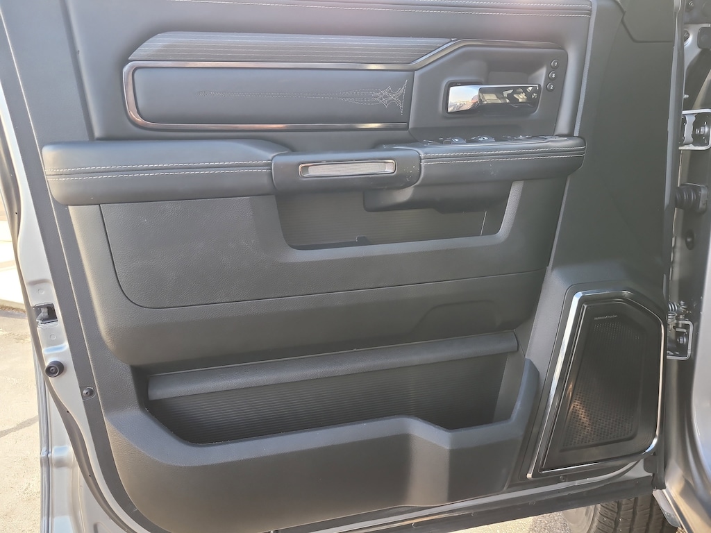 THIS VEHCILE INCLUDES THE FOLLOWING OPTIONS AND FEATURES: Chrome Bumper Package (Bright Front Bumper, Bright Rear Bumper, and Chrome Tow Hooks), Limited Level 1 Equipment Group (12" Touchscreen Display, 17 Speaker harman/kardon Premium Sound, 4 Adjustable Cargo Tie-Down Hooks, 4G LTE Wi-Fi Hot Spot, Adaptive Cruise Control w/Stop, Adaptive Steering System, Alexa Built-In, Apple CarPlay, Center Hub, Center Stop Lamp w/Cargo View Camera, Connected Travel & Traffic Services, Connectivity - US/Canada, Digital Rearview Mirror, Disassociated Touchscreen Display, For Details Visit DriveUconnect.com, For More Info, Call 800-643-2112, Full Speed Forward Collision Warning Plus, Global Telematics Box Module (TBM), Google Android Auto, GPS Antenna Input, GPS Navigation, HD Radio, Integrated Voice Command w/Bluetooth, Lane Keep Assist, LED Bed Lighting, MOPAR Spray In Bedliner, Off-Road Information Pages, Power Deployable Running Boards, Radio: Uconnect 5 Nav w/12.0" Display, RamBox Cargo Management System, Ramcharger Wireless Charging Pad, Selectable Tire Fill Alert, SiriusXM Radio Service, SiriusXM w/360L, Surround View Camera System, Trailer Reverse Guidance, Trailer Tow Pages, Truck Bed Cargo Divider, Vendor Painted Cargo Box, Vendor Painted Cargo Box Tracking, and Wheels: 20" x 8.0" Satin Carbon w/Chrome Insert), Quick Order Package 2HM Limited, 10 Speakers, 220 Amp Alternator, 4-Wheel Disc Brakes, 6000# Front Axle w/Hub Ext, ABS brakes, Active Noise Control System, Adjustable pedals, Air Conditioning, Alloy wheels, AM/FM radio: SiriusXM with 360L, Apple CarPlay/Android Auto, Audio memory, Auto High-beam Headlights, Auto-dimming door mirrors, Auto-dimming Rear-View mirror, Automatic temperature control, Bodyside moldings, Box & Rear Fender Clearance Lamps, Brake assist, Bumpers: body-color, Chrome Flat Cab-Length Side Steps, Clearance Lamps, Compass, Delay-off headlights, Driver door bin, Driver vanity mirror, Dual front impact airbags, Dual front side impact airbags, Dual Rear Wheel Fender Flare Tracking, Dual Rear Wheels, Electronic Stability Control, Electronically Controlled Throttle, Front anti-roll bar, Front Bucket Seats, Front Center Armrest w/Storage, Front dual zone A/C, Front fog lights, Front License Plate Bracket, Front reading lights, Fully automatic headlights, Garage door transmitter, Genuine wood console insert, Genuine wood dashboard insert, Genuine wood door panel insert, Heated door mirrors, Heated front seats, Heated rear seats, Heated steering wheel, Illuminated entry, Instrument Cluster Theme 8, Leather steering wheel, Limited Leather Bucket Seats, Low tire pressure warning, Luxury Door Trim Panel, Memory seat, Navigation System, Occupant sensing airbag, Outside temperature display, Overhead airbag, Overhead console, Panic alarm, ParkView Rear Back-Up Camera, Passenger door bin, Passenger vanity mirror, Pedal memory, Power door mirrors, Power driver seat, Power passenger seat, Power steering, Power windows, Radio data system, Radio: Uconnect 5 Nav w/8.4" Display, Rain sensing wipers, RamBox Delete, Rear reading lights, Rear seat center armrest, Rear step bumper, Rear window defroster, Remote keyless entry, Security system, Speed control, Split folding rear seat, Steering wheel mounted audio controls, Tachometer, Tilt steering wheel, Tip Start, Traction control, Trip computer, Turn signal indicator mirrors, Variably intermittent wipers, Ventilated front seats, Voltmeter, Wheels: 17" x 6.0" Polished Aluminum, and Wheels: 20" x 8.0" Diamond Cut Face Aluminum.