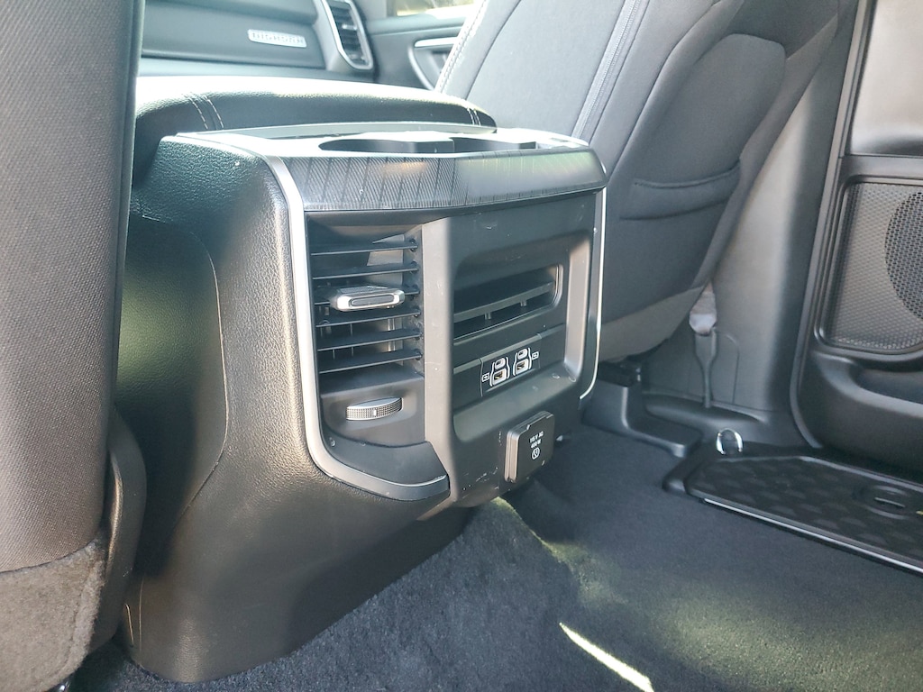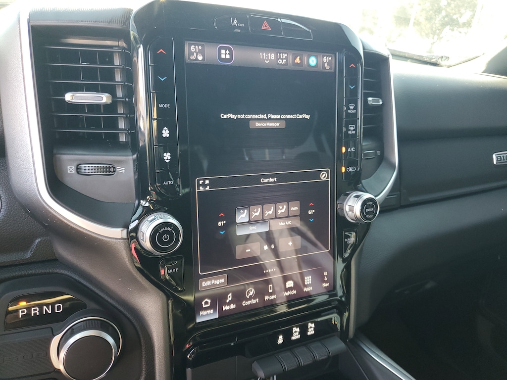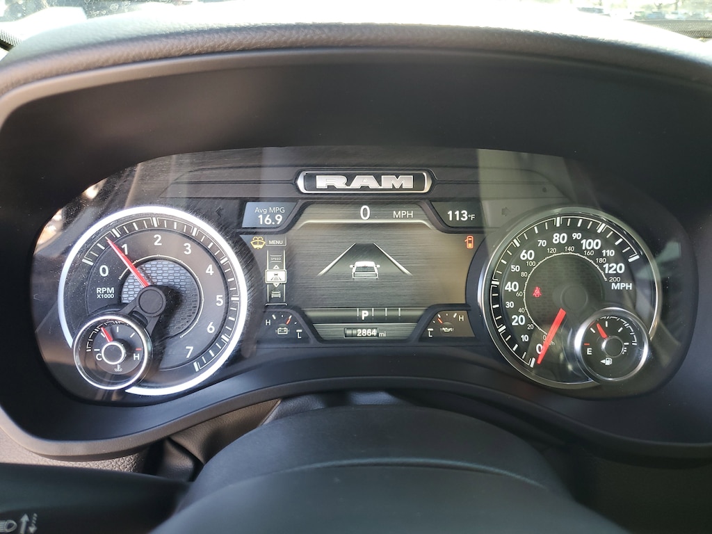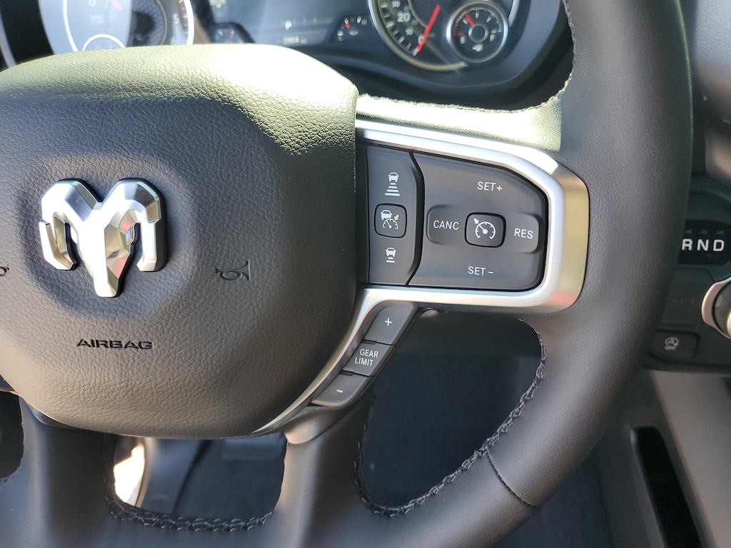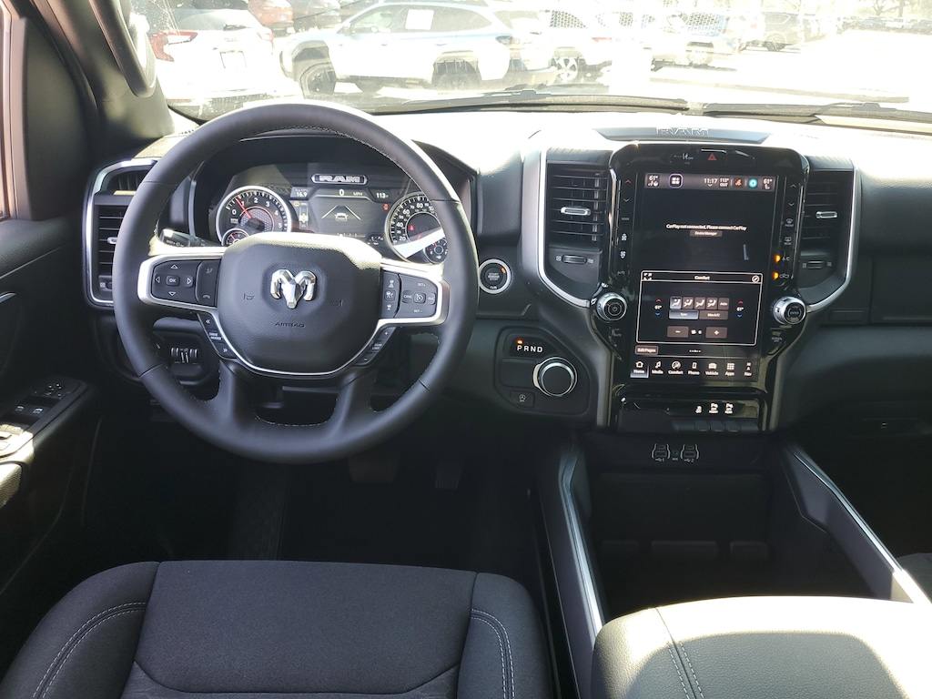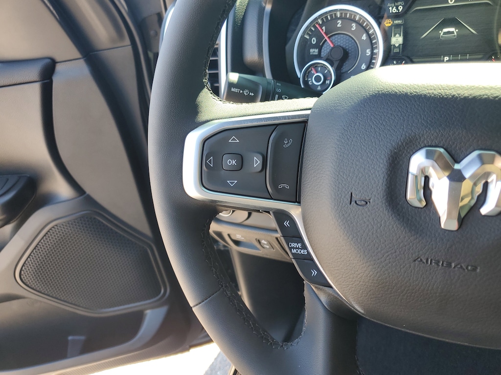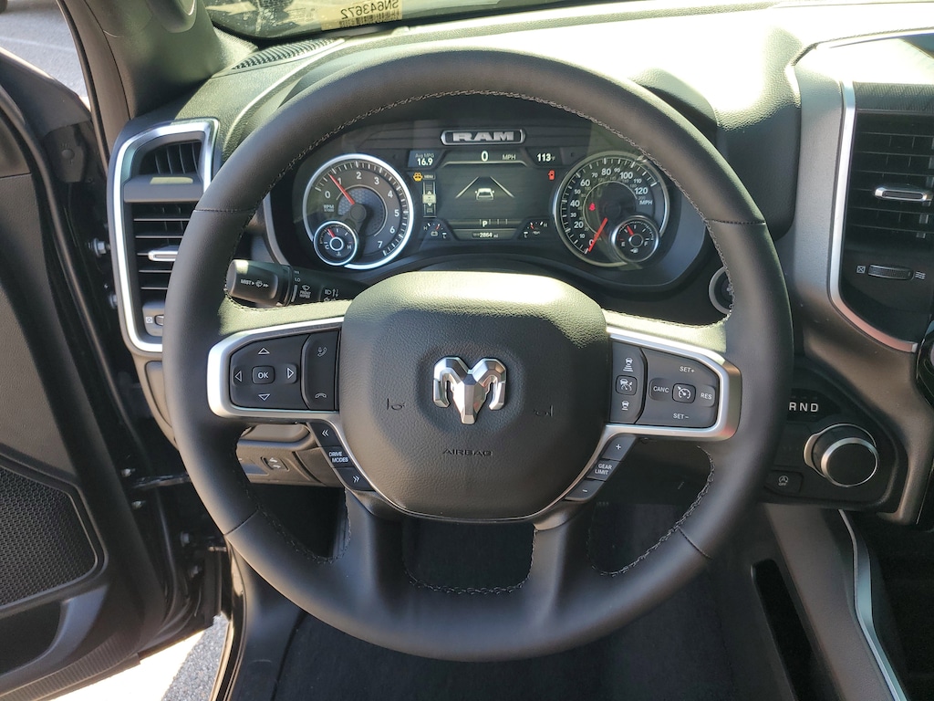 This Vehicle comes equipped with: Big Horn Level 2 Equipment Group (115V Auxiliary Power Outlet, 115V Auxiliary Rear Power Outlet, 12" Touchscreen Display, 2nd Row In Floor Storage Bins, 400W Inverter, 4G LTE Wi-Fi Hot Spot, 9 Amplified Speakers w/Subwoofer, Air Conditioning ATC w/Dual Zone Control, Apple CarPlay, Auto Power-Folding Mirrors, Auto-Dimming Exterior Driver Mirror, Auto-Dimming Rear-View Mirror, Black Exterior Mirrors, Black Premium Power Mirrors, Cluster 7.0" TFT Color Display, Configurable Drive Mode, Connected Travel & Traffic Services, Connectivity - US/Canada, Convex Wide-Angle Exterior Mirror Insert, Exterior Mirrors Courtesy Lamps, Exterior Mirrors w/Heating Element, Exterior Mirrors w/Supplemental Signals, Glove Box Lamp, Google Android Auto, GPS Antenna Input, GPS Navigation, HD Radio, Heated Front Seats, Heated Steering Wheel, Integrated Voice Command w/Bluetooth, Leather Wrapped Steering Wheel, LED Dome Lamp w/On/Off Switch, LED Footwell Lighting, Media Hub w/2 Charge Only USBs, Overhead LED Lamps, Power 2-Way Driver Lumbar Adjust, Power Adjust 8-Way Driver Seat, Power Adjustable Pedals, Premium Overhead Console, Radio: Uconnect 5 Nav w/12.0" Display, Rear Power Sliding Window, Rear Window Defroster, Remote Tailgate Release, Security Alarm, SiriusXM w/360L, Steering Wheel Mounted Audio Controls, Sun Visors w/Illuminated Vanity Mirrors, Universal Garage Door Opener, and USB Host Flip), Quick Order Package 21Z Big Horn, Sport Appearance Package (3 Rear Seat Head Restraints, 4 Way Front Headrests, Black Interior Accents, Body Color Door Handles, Body Color Front Bumper, Body Color Rear Bumper w/Step Pads, Body Color Tailgate Handle, Bucket Seats, Deluxe Cloth Bucket Seats, Front Seat Back Map Pockets, Full Length Floor Console, Grille Surround 1 Body Color Texture 1 Black, Manual Adjust 4-Way Front Passenger Seat, RAM Grille Badge - Chrome, Rear 60/40 Folding Seat, and Rear Center Armrest), 3.21 Rear Axle Ratio, 33 Gallon Fuel Tank, 4-Wheel Disc Brakes, 6 Speakers, ABS brakes, Air Conditioning, Alloy wheels, AM/FM radio, Apple CarPlay/Android Auto, Auto High-beam Headlights, Brake assist, Bumpers: chrome, Cloth Bench Seat, Compass, Delay-off headlights, Driver door bin, Dual front impact airbags, Dual front side impact airbags, Electronic Stability Control, Exterior Parking Camera Rear, Front anti-roll bar, Front Center Armrest w/Storage, Front fog lights, Front reading lights, Front wheel independent suspension, Fully automatic headlights, Heated door mirrors, Illuminated entry, Low tire pressure warning, Manual Folding Exterior Mirrors, Manufacturer's Statement of Origin, MOPAR Front & Rear Rubber Floor Mats, Occupant sensing airbag, Outside temperature display, Overhead airbag, Overhead console, Panic alarm, Passenger door bin, Passenger vanity mirror, Power door mirrors, Power steering, Power windows, Radio data system, Radio: Uconnect 5 W w/8.4" Display, Rear anti-roll bar, Rear seat center armrest, Rear step bumper, Rear Underseat Compartment Storage, Remote keyless entry, Speed control, Split folding rear seat, Supplier Part Tracking (J-1), Tachometer, Telescoping steering wheel, Tilt steering wheel, Traction control, Trip computer, Variably intermittent wipers, Voltmeter, Wheels: 18" x 8" Cast-Aluminum Painted, and Wheels: 20" x 9" Aluminum Chrome Clad (WRK)