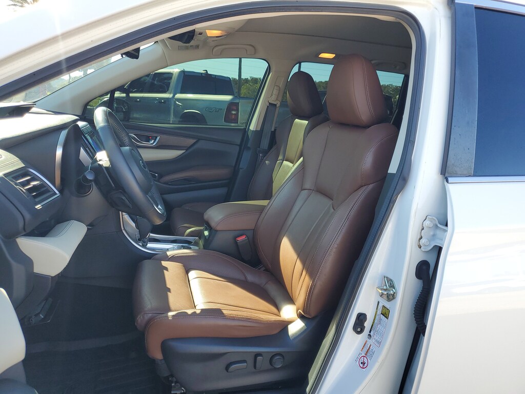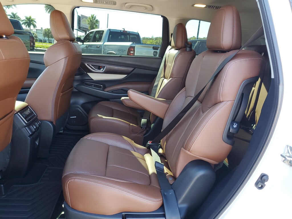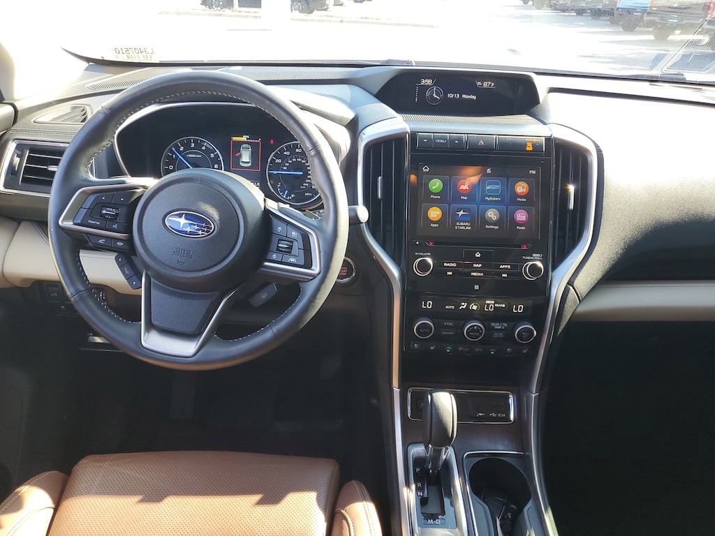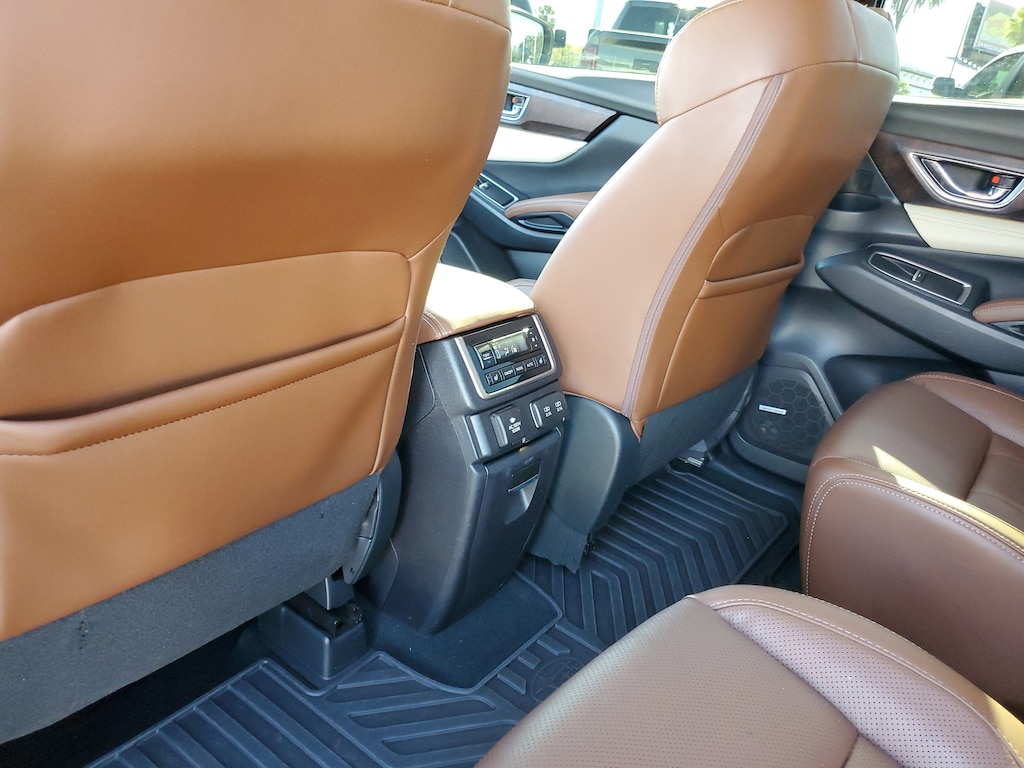 This Vehicle comes equipped with: Popular Package #2 (All-Weather Floor Liners, Auto-Dimming Exterior Mirror w/Approach Light, Cargo Tray, Rear Bumper Cover, and Splash Guards), Standard Model, 14 Speakers, 3rd row seats: bench, 4-Wheel Disc Brakes, ABS brakes, Air Conditioning, Alloy wheels, AM/FM radio: SiriusXM, Auto High-beam Headlights, Auto-dimming Rear-View mirror, Automatic temperature control, Axle Ratio: 4.44, Brake assist, Bumpers: body-color, CD player, Compass, Delay-off headlights, Driver door bin, Driver vanity mirror, Dual front impact airbags, Dual front side impact airbags, Electronic Stability Control, Emergency communication system: STARLINK Safety and Security (Subscription Required), Exterior Parking Camera Rear, Four wheel independent suspension, Front anti-roll bar, Front Bucket Seats, Front Center Armrest, Front dual zone A/C, Front fog lights, Front reading lights, Fully automatic headlights, Garage door transmitter: HomeLink, harman/kardon® Speakers, Heated & Ventilated Front Bucket Seats, Heated door mirrors, Heated front seats, Heated rear seats, Heated steering wheel, Illuminated entry, Knee airbag, Low tire pressure warning, Memory seat, Navigation System, Occupant sensing airbag, Outside temperature display, Overhead airbag, Overhead console, Panic alarm, Passenger door bin, Passenger vanity mirror, Perforated Leather-Trimmed Upholstery, Power door mirrors, Power driver seat, Power Liftgate, Power moonroof, Power passenger seat, Power steering, Power windows, Radio data system, Radio: Subaru STARLINK 8.0" Multimedia Nav System, Rain sensing wipers, Rear air conditioning, Rear anti-roll bar, Rear reading lights, Rear Seatback Protector, Rear window defroster, Rear window wiper, Reclining 3rd row seat, Remote keyless entry, Security system, Speed control, Split folding rear seat, Spoiler, STARLINK/Apple CarPlay/Android Auto, Steering wheel mounted audio controls, Tachometer, Telescoping steering wheel, Tilt steering wheel, Traction control, Trip computer, Turn signal indicator mirrors, Variably intermittent wipers, Ventilated front seats, and Wheels: 20" Dk Gray Aluminum Alloy w/Machine Finish.