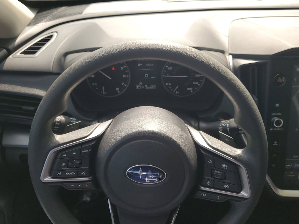 THIS VEHICLE IS EQUIPT WITH THE FOLLOWING FEATURES AND OPTIONS: BSD/RCTA & All Weather Pkg & Power Moonroof, 4-Wheel Disc Brakes, 6 Speakers, ABS brakes, Air Conditioning, All-Weather Floor Liners, Alloy wheels, AM/FM radio: SiriusXM, Anti-whiplash front head restraints, Auto High-beam Headlights, Auto-Dimming Mirror w/Compass & HomeLink, Automatic temperature control, Brake assist, Bumpers: body-color, Cargo Net, Cargo Tray, Driver door bin, Driver vanity mirror, Dual front impact airbags, Dual front side impact airbags, Electronic Stability Control, Emergency communication system: STARLINK Safety and Security (Subscription Required), Exterior Parking Camera Rear, Four wheel independent suspension, Front anti-roll bar, Front Bucket Seats, Front Center Armrest, Front dual zone A/C, Front fog lights, Front reading lights, Fully automatic headlights, Illuminated entry, Knee airbag, LED Upgrade (15G), Low tire pressure warning, Occupant sensing airbag, Outside temperature display, Overhead airbag, Overhead console, Panic alarm, Passenger door bin, Passenger vanity mirror, Power door mirrors, Power steering, Power windows, Radio data system, Radio: Subaru STARLINK 11.6 Multimedia Plus Sys, Rear anti-roll bar, Rear Bumper Applique, Rear seat center armrest, Rear Seatback Protector, Rear window defroster, Rear window wiper, Remote keyless entry, Security system, Side Sill Plates, Speed control, Speed-sensing steering, Split folding rear seat, Spoiler, Sport Cloth Upholstery, STARLINK/Apple CarPlay/Android Auto, Steering wheel mounted audio controls, Tachometer, Telescoping steering wheel, Tilt steering wheel, Traction control, Trip computer, Turn signal indicator mirrors, Variably intermittent wipers, Wheels: 18 x 7.0 Machine Finish J Aluminum-Alloy, and Windshield Sunshade.