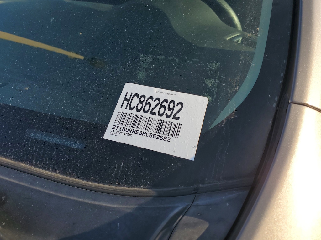 2017 Toyota Corolla 1.8L I4 DOHC Falcon Gray Metallic ABS brakes, Active Cruise Control, Electronic Stability Control, Heated door mirrors, Illuminated entry, Low tire pressure warning, Remote keyless entry, Traction control. This vehicle also comes equipped with: ABS brakes, Active Cruise Control, Electronic Stability Control, Heated door mirrors, Illuminated entry, Low tire pressure warning, Remote keyless entry, Traction control, 6 Speakers, Air Conditioning, AM/FM radio, Auto High-beam Headlights, Automatic temperature control, Brake assist, Bumpers: body-color, CD player, Delay-off headlights, Driver door bin, Driver vanity mirror, Dual front impact airbags, Dual front side impact airbags, Exterior Parking Camera Rear, Fabric Seat Trim, Front anti-roll bar, Front Bucket Seats, Front Center Armrest w/Storage, Front reading lights, Front wheel independent suspension, Fully automatic headlights, Knee airbag, LED Daytime Running Lights (DRL), Occupant sensing airbag, Outside temperature display, Overhead airbag, Panic alarm, Passenger door bin, Passenger vanity mirror, Power door mirrors, Power steering, Power windows, Radio data system, Radio: Entune Audio w/6.1 Screen, Rear anti-roll bar, Rear seat center armrest, Rear window defroster, Speed control, Speed-sensing steering, Split folding rear seat, Steering wheel mounted audio controls, Tachometer, Telescoping steering wheel, Tilt steering wheel, Trip computer, Variably intermittent wipers, and Wheels: 16 x 6.5 Wide Vent Steel. FWD CVT Recent Arrival! Priced below KBB Fair Purchase Price! 28/36 City/Highway MPG