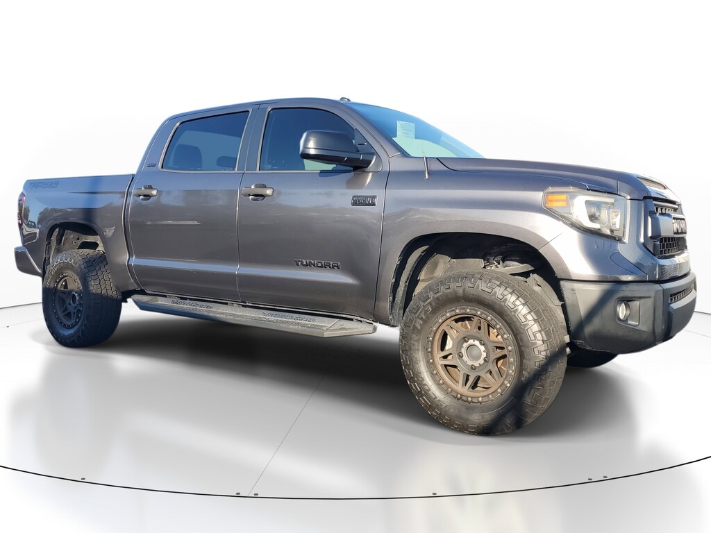 2017 Toyota Tundra 5.7L 8-Cylinder SMPI DOHC Magnetic Gray Metallic 4WD, Black Cloth. This vehicle also comes equipped with: 4WD, Black Cloth, 18 x 8J Styled Steel Wheels, 3-Passenger Front Bench Seat, 4-Wheel Disc Brakes, 4.30 Axle Ratio, 6 Speakers, ABS brakes, Air Conditioning, AM/FM radio: SiriusXM, Brake assist, CD player, Driver door bin, Driver vanity mirror, Dual front impact airbags, Dual front side impact airbags, Electronic Stability Control, Exterior Parking Camera Rear, Fabric Seat Trim, Front anti-roll bar, Front Center Armrest w/Storage, Front fog lights, Front reading lights, Front wheel independent suspension, Heated door mirrors, Illuminated entry, Knee airbag, Low tire pressure warning, Occupant sensing airbag, Outside temperature display, Overhead airbag, Overhead console, Panic alarm, Passenger door bin, Passenger vanity mirror, Power door mirrors, Power steering, Power windows, Radio: Entune Audio Display AM/FM/HD w/CD Player, Rear reading lights, Rear seat center armrest, Rear step bumper, Rear window defroster, Remote keyless entry, Speed control, Speed-sensing steering, Split folding rear seat, Steering wheel mounted audio controls, Tachometer, Tilt steering wheel, Traction control, Trip computer, Variably intermittent wipers, and Voltmeter. 4WD 6-Speed Automatic Electronic with Overdrive Recent Arrival! Odometer is 20007 miles below market average!