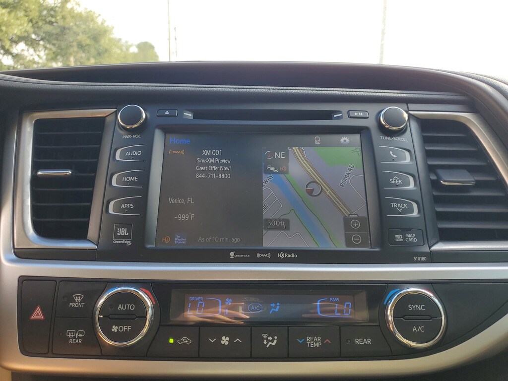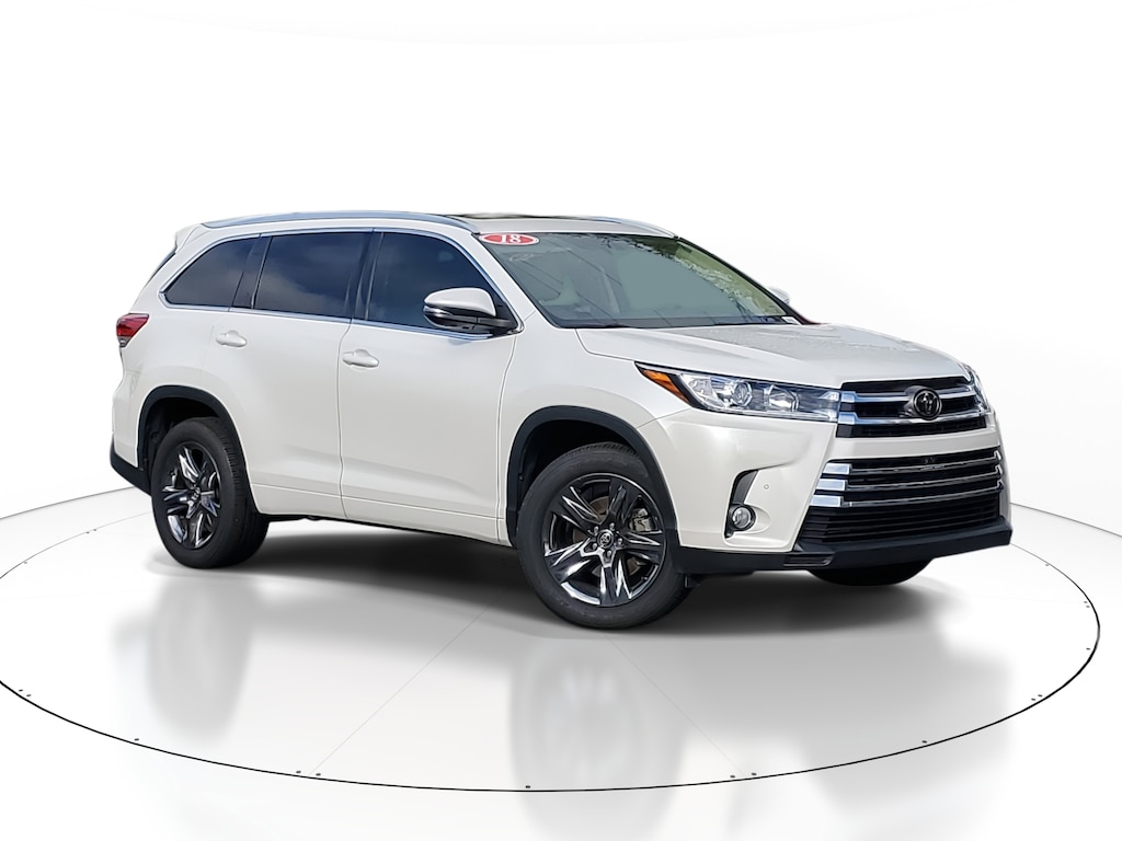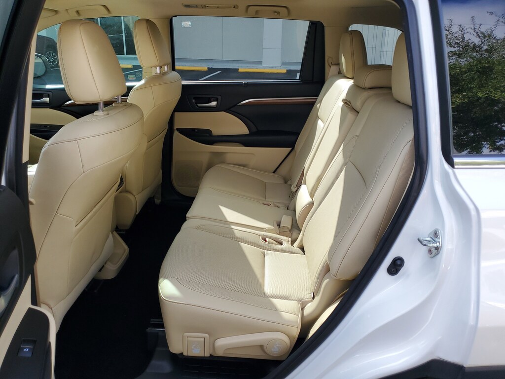2018 Toyota Highlander 3.5L V6 Blizzard Pearl Seating for 8: Heated 2nd Row 60/40 Bench Seat. This vehicle also comes equipped with: Seating for 8: Heated 2nd Row 60/40 Bench Seat, 12 Speakers, 3.003 Axle Ratio, 4-Wheel Disc Brakes, ABS brakes, Air Conditioning, Alloy wheels, AM/FM radio: SiriusXM, Auto High-beam Headlights, Auto-dimming Rear-View mirror, Automatic temperature control, Brake assist, Bumpers: body-color, CD player, Delay-off headlights, Driver door bin, Driver vanity mirror, Dual front impact airbags, Dual front side impact airbags, Electronic Stability Control, Emergency communication system: Safety Connect, Exterior Parking Camera Rear, Four wheel independent suspension, Front anti-roll bar, Front Bucket Seats, Front Center Armrest, Front dual zone A/C, Front fog lights, Front reading lights, Fully automatic headlights, Garage door transmitter, Heated door mirrors, Heated front seats, Heated rear seats, Heated steering wheel, Heated/Ventilated Front Bucket Seats, Illuminated entry, Knee airbag, Leather Shift Knob, Low tire pressure warning, Memory seat, Navigation System, Occupant sensing airbag, Outside temperature display, Overhead airbag, Overhead console, Panic alarm, Panoramic Moonroof, Panoramic View Monitor, Passenger door bin, Passenger vanity mirror, Perforated Leather Seat Trim, Power door mirrors, Power driver seat, Power Liftgate, Power moonroof, Power passenger seat, Power steering, Power windows, Radio: Entune Premium JBL Audio w/Nav & App Suite, Rain sensing wipers, Rear air conditioning, Rear anti-roll bar, Rear reading lights, Rear window defroster, Rear window wiper, Reclining 3rd row seat, Remote keyless entry, Roof rack: rails only, Safety Connect, Security system, Speed control, Speed-sensing steering, Split folding rear seat, Spoiler, Steering wheel mounted audio controls, Tachometer, Telescoping steering wheel, Tilt steering wheel, Traction control, Trip computer, Turn signal indicator mirrors, Variably intermittent wipers, Ventilated front seats, and Wheels: 19 5-Spoke Dark-Chromtec Alloy. FWD 8-Speed Automatic Electronic with ECT-i Odometer is 56544 miles below market average! 21/27 City/Highway MPG