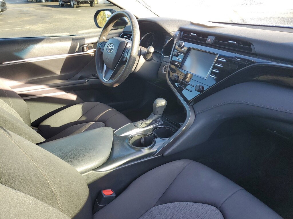 2019 Toyota Camry 2.5L I4 DOHC 16V Brownstone Black Cloth, Auto-Dimming Rearview Mirror w/HomeLink, Convenience Package, Smart Key System w/Push Button Start. This vehicle also comes equipped with: Convenience Package (Auto-Dimming Rearview Mirror w/HomeLink and Smart Key System w/Push Button Start), Black Cloth, 4-Wheel Disc Brakes, 6 Speakers, 7.5J x 17 Alloy Wheels, ABS brakes, Air Conditioning, Alloy wheels, AM/FM radio, Apple CarPlay, Auto High-beam Headlights, Brake assist, Bumpers: body-color, Delay-off headlights, Driver door bin, Driver vanity mirror, Dual front impact airbags, Dual front side impact airbags, Electronic Stability Control, Emergency communication system: Safety Connect, Exterior Parking Camera Rear, Fabric Seat Trim, Four wheel independent suspension, Front anti-roll bar, Front Bucket Seats, Front Center Armrest, Front reading lights, Fully automatic headlights, Illuminated entry, Knee airbag, Low tire pressure warning, Occupant sensing airbag, Outside temperature display, Overhead airbag, Overhead console, Panic alarm, Passenger door bin, Passenger vanity mirror, Power door mirrors, Power driver seat, Power steering, Power windows, Radio data system, Radio: Entune 3.0 Audio Plus w/App Suite, Radio: Entune 3.0 Audio w/App Suite, Rear anti-roll bar, Rear reading lights, Rear seat center armrest, Rear side impact airbag, Rear window defroster, Remote keyless entry, Security system, Speed control, Speed-sensing steering, Split folding rear seat, Steering wheel mounted audio controls, Tachometer, Telescoping steering wheel, Tilt steering wheel, Traction control, Trip computer, and Variably intermittent wipers. FWD 8-Speed Automatic Recent Arrival! Priced below KBB Fair Purchase Price! Odometer is 2741 miles below market average! 28/39 City/Highway MPG