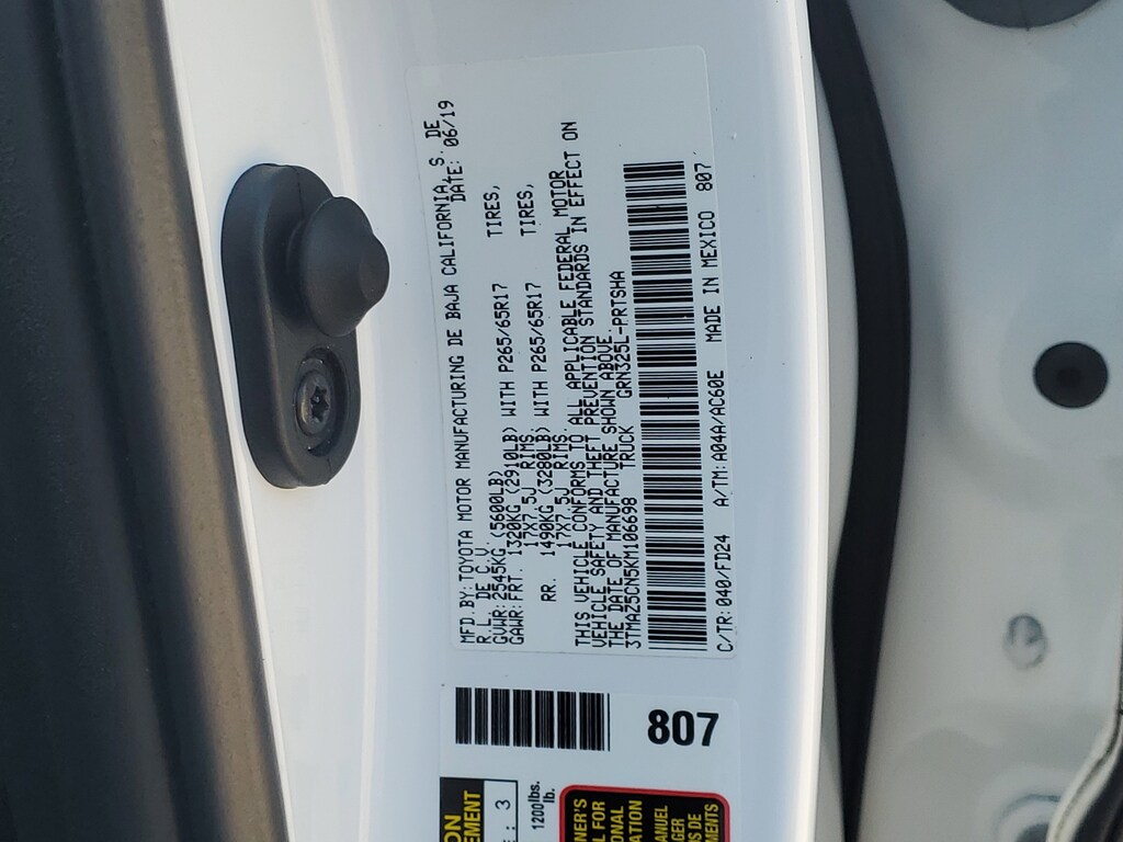 2019 Toyota Tacoma V6 V6 3.5L V6 PDI DOHC 24V LEV3-ULEV70 278hp RWD 6-Speed Automatic