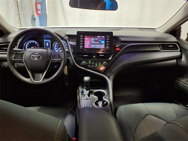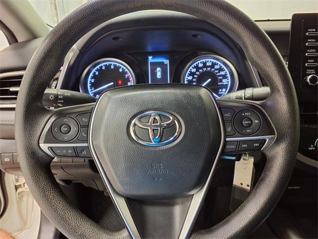 Super White 2021 Toyota Camry LE FWD 8-Speed Automatic 2.5L I4 DOHC 16V Black w/Fabric Seat Trim.