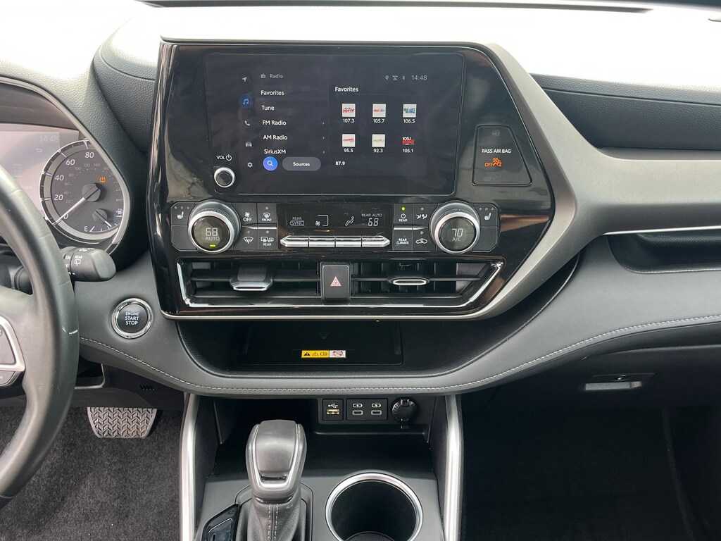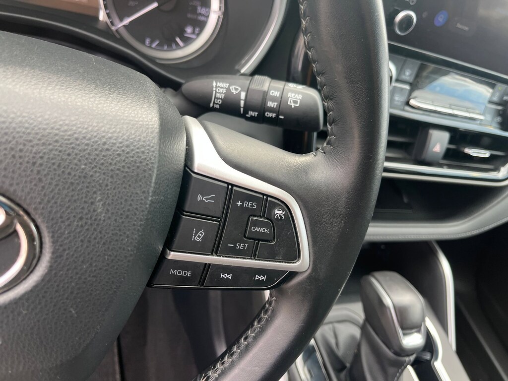This Vehicle is nicely equipped with the following features: AWD, 18 Painted Alloy Wheels, 3.329 Axle Ratio, 3rd row seats: split-bench, 4-Wheel Disc Brakes, 6 Speakers, ABS brakes, Air Conditioning, Alloy wheels, AM/FM radio: SiriusXM, Apple CarPlay/Android Auto, Auto High-beam Headlights, Automatic temperature control, Brake assist, Bumpers: body-color, Delay-off headlights, Driver door bin, Driver vanity mirror, Dual front impact airbags, Dual front side impact airbags, Electronic Stability Control, Emergency communication system: Safety Connect (up to 10-year trial subscription), Engine Immobilizer, Exterior Parking Camera Rear, Fabric Seat Trim, Four wheel independent suspension, Front anti-roll bar, Front Bucket Seats, Front Center Armrest, Front dual zone A/C, Front reading lights, Fully automatic headlights, Heated door mirrors, Illuminated entry, Knee airbag, Low tire pressure warning, Occupant sensing airbag, Outside temperature display, Overhead airbag, Overhead console, Panic alarm, Passenger door bin, Passenger vanity mirror, Power door mirrors, Power driver seat, Power steering, Power windows, Radio: 8 Toyota Audio Multimedia, Rear air conditioning, Rear anti-roll bar, Rear reading lights, Rear seat center armrest, Rear window defroster, Rear window wiper, Reclining 3rd row seat, Remote keyless entry, Speed control, Speed-sensing steering, Split folding rear seat, Spoiler, Steering wheel mounted audio controls, Tachometer, Telescoping steering wheel, Tilt steering wheel, Traction control, Trip computer, Turn signal indicator mirrors, and Variably intermittent wipers.