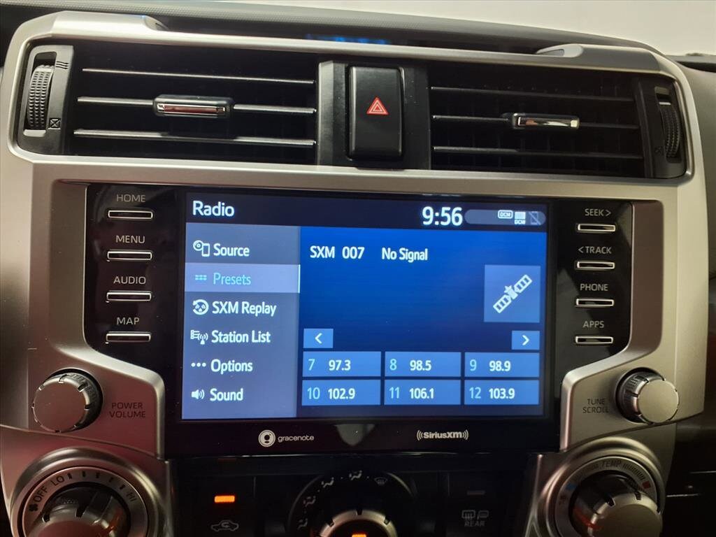This vehicle comes equipped with: 4WD, Black/Graphite Cloth, 17 6-Spoke Alloy Wheels, 3.727 Axle Ratio, 4-Wheel Disc Brakes, 8 Speakers, ABS brakes, Air Conditioning, Alloy wheels, AM/FM radio: SiriusXM, Anti-whiplash front head restraints, Apple CarPlay/Android Auto, Auto High-beam Headlights, Brake assist, Bumpers: body-color, Driver door bin, Driver vanity mirror, Dual front impact airbags, Dual front side impact airbags, Electronic Stability Control, Emergency communication system: Safety Connect (1-year trial), Exterior Parking Camera Rear, Fabric Seat Trim, Front anti-roll bar, Front Bucket Seats, Front Center Armrest, Front fog lights, Front reading lights, Front wheel independent suspension, Heated door mirrors, Illuminated entry, Knee airbag, Leather Shift Knob, Leather steering wheel, Low tire pressure warning, Occupant sensing airbag, Outside temperature display, Overhead airbag, Overhead console, Panic alarm, Passenger door bin, Passenger vanity mirror, Power door mirrors, Power driver seat, Power steering, Power windows, Radio: Audio, Rear anti-roll bar, Rear seat center armrest, Rear window defroster, Rear window wiper, Remote keyless entry, Security system, Speed control, Speed-sensing steering, Split folding rear seat, Spoiler, Steering wheel mounted audio controls, Tachometer, Telescoping steering wheel, Tilt steering wheel, Traction control, Trip computer, and Variably intermittent wipers.