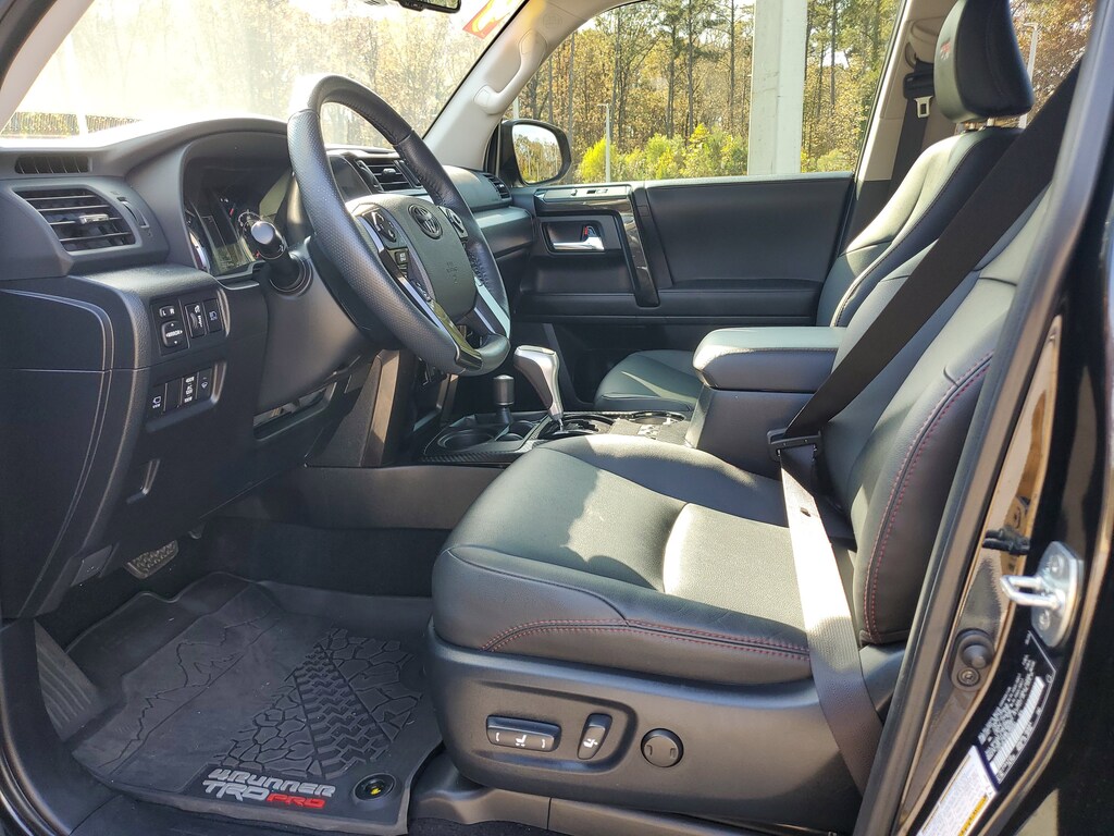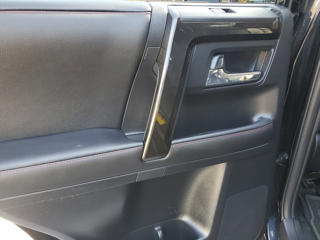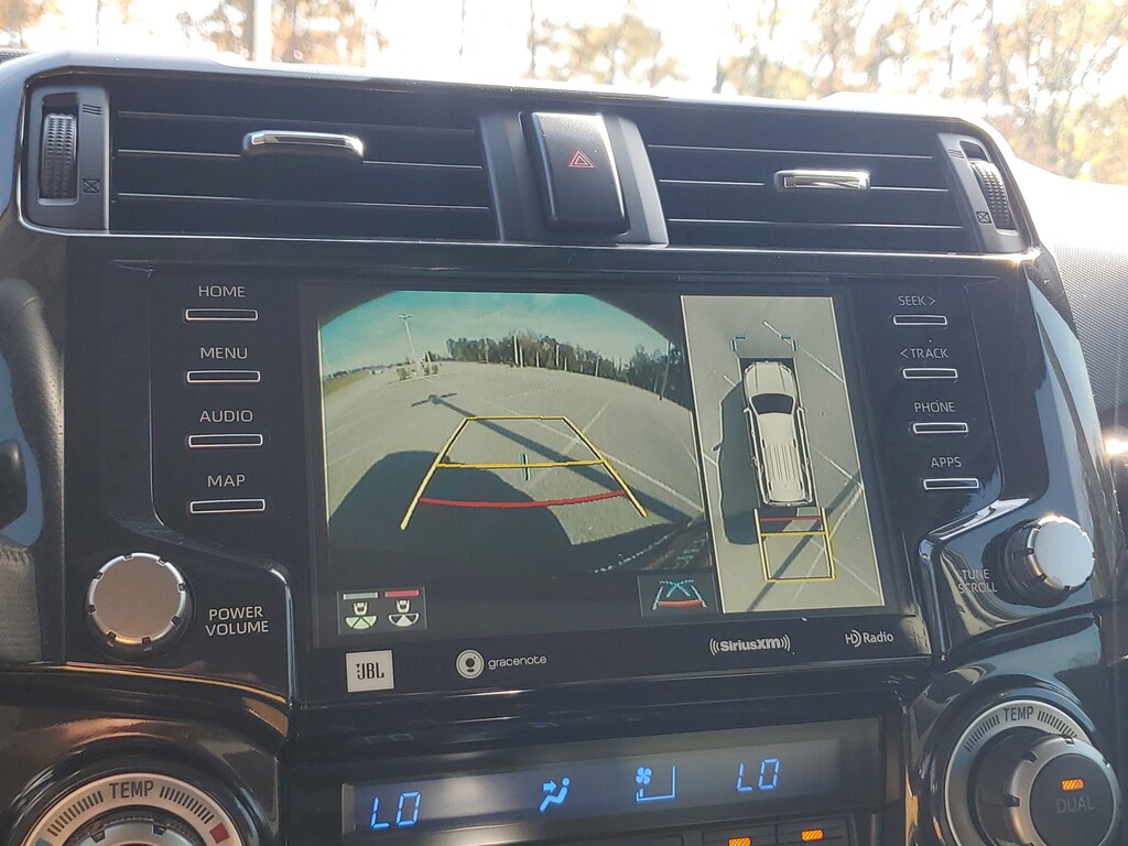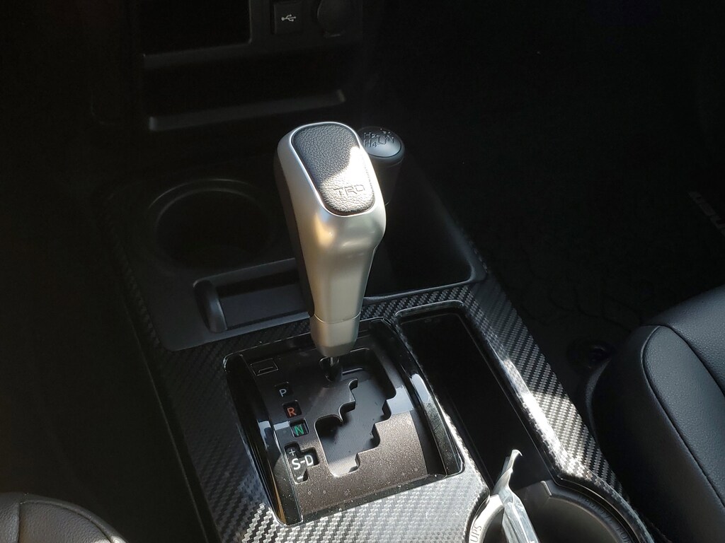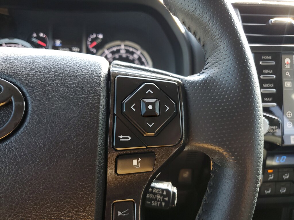 This Vehicle is nicely equipped with the following features: 4WD, 15 Speakers, 3.727 Axle Ratio, 4-Wheel Disc Brakes, ABS brakes, Air Conditioning, Alloy wheels, AM/FM radio: SiriusXM, Anti-whiplash front head restraints, Apple CarPlay/Android Auto, Auto High-beam Headlights, Auto-dimming Rear-View mirror, Automatic temperature control, Black Lug Nuts, Brake assist, Bumpers: body-color, Compass, Driver door bin, Driver vanity mirror, Dual front impact airbags, Dual front side impact airbags, Dual Zone Auto Climate Control, Electronic Stability Control, Emergency communication system: Safety Connect (1-year trial), Exterior Parking Camera Rear, Fog Lights, Fox Shocks, Front anti-roll bar, Front Bucket Seats, Front Center Armrest, Front dual zone A/C, Front fog lights, Front reading lights, Front wheel independent suspension, Garage Door Opener, Garage door transmitter: HomeLink, Heated door mirrors, Heated Front Bucket Seats, Heated front seats, Heated Outside Rear-View Mirrors, Heated steering wheel, Illuminated entry, Knee airbag, Leather Shift Knob, Low tire pressure warning, Moonroof w/Tilt Up & Slide, Multi-Terrain Back Monitor, Navigation System, Occupant sensing airbag, Outside temperature display, Overhead airbag, Overhead console, Panic alarm, Passenger door bin, Passenger vanity mirror, Power door mirrors, Power driver seat, Power moonroof, Power passenger seat, Power steering, Power windows, Radio: Premium Audio w/JBL, Rear anti-roll bar, Rear seat center armrest, Rear window defroster, Rear window wiper, Remote keyless entry, Roof rack, Roof Rack, Security system, SofTex Seat Trim, Speed control, Speed-sensing steering, Split folding rear seat, Spoiler, Steering wheel mounted audio controls, Tachometer, Telescoping steering wheel, Tilt steering wheel, Traction control, TRD Pro All Weather Floor Liner, TRD Pro Badging, TRD Pro Exhaust, TRD Shift Knob, Trip computer, Variably intermittent wipers, Wheel Locks, and Wheels: 17 Matte Black Flow-Formed TRD Alloy.