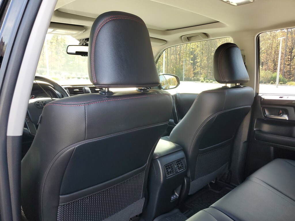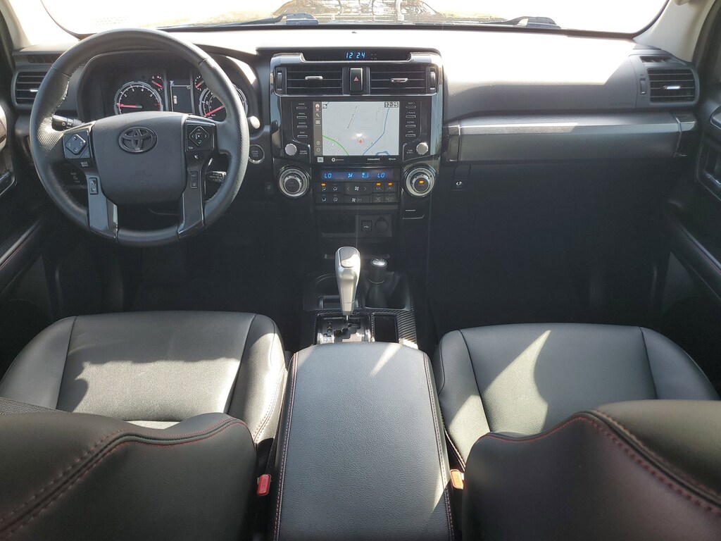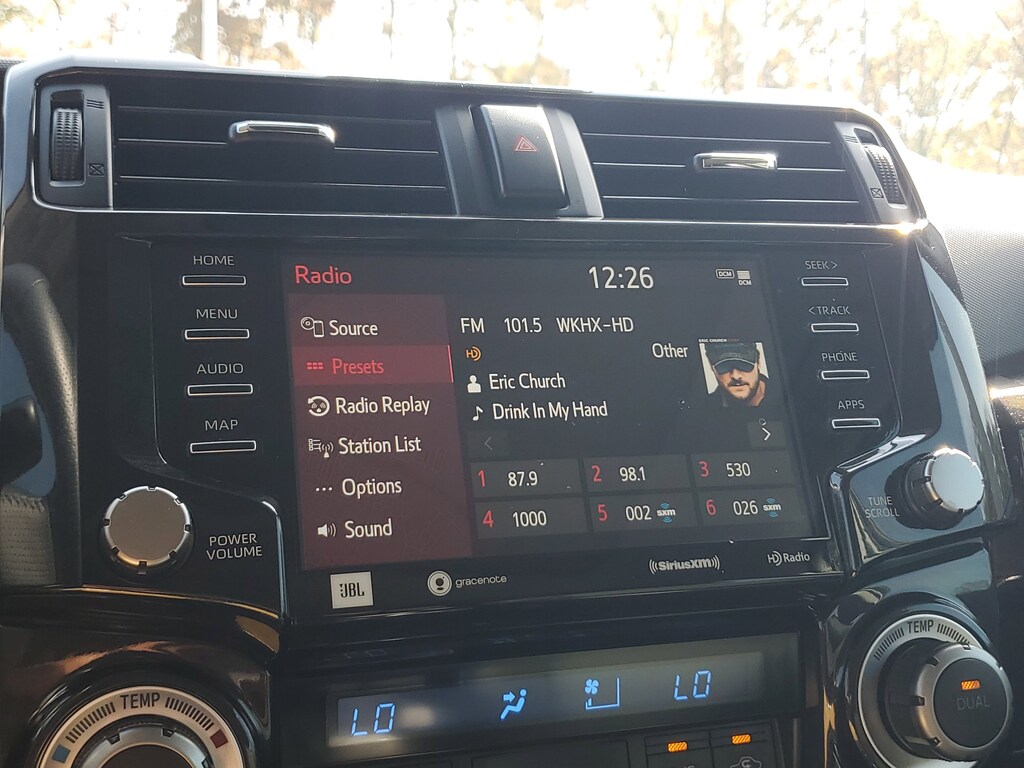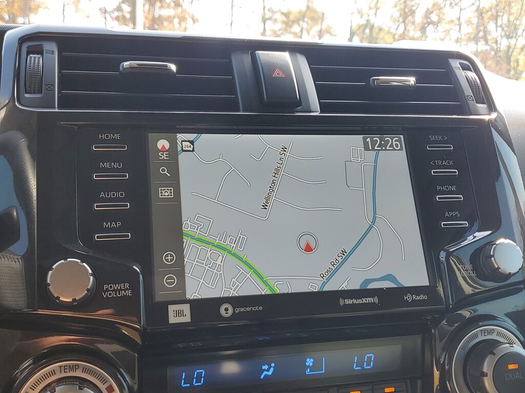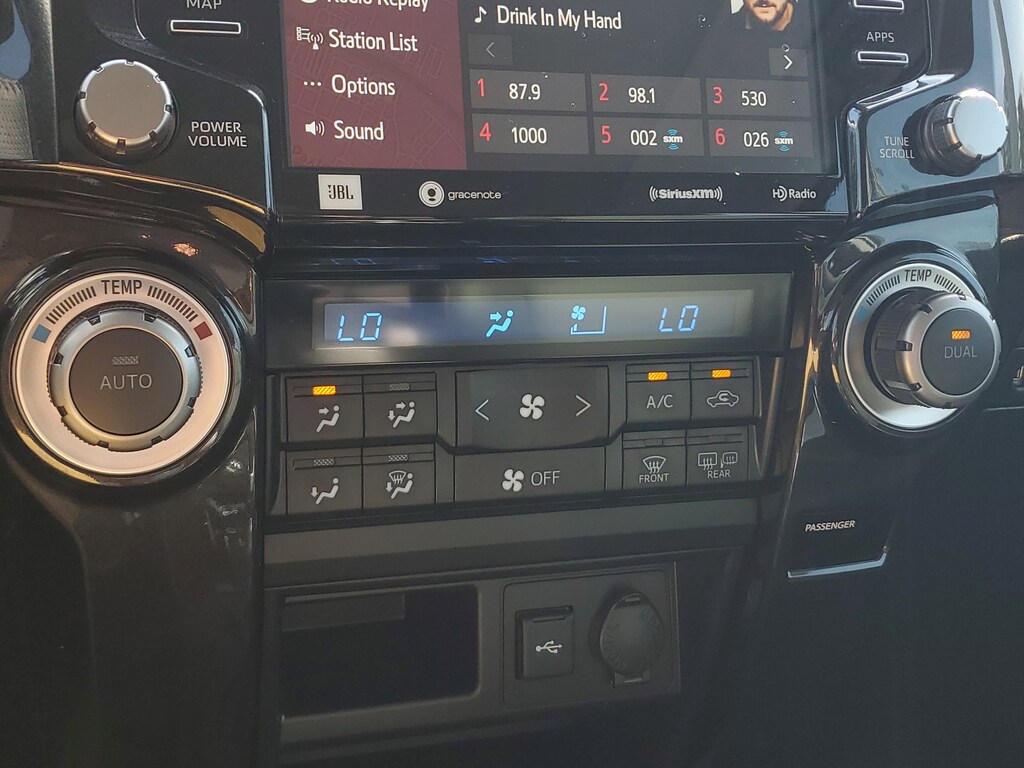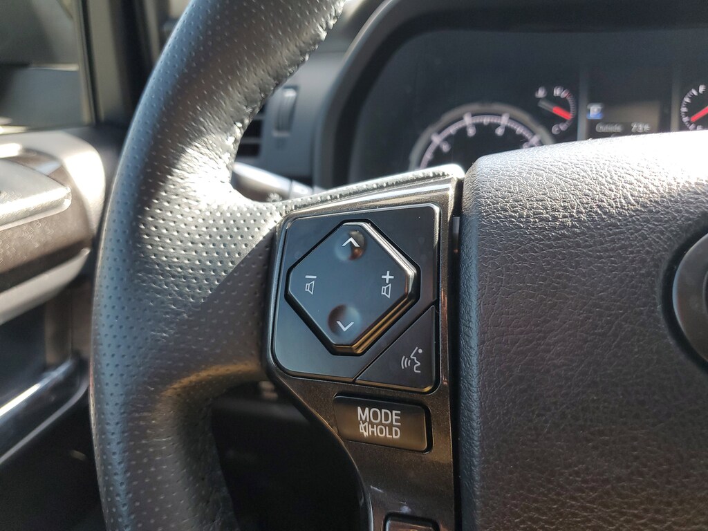This Vehicle is nicely equipped with the following features: 4WD, 15 Speakers, 3.727 Axle Ratio, 4-Wheel Disc Brakes, ABS brakes, Air Conditioning, Alloy wheels, AM/FM radio: SiriusXM, Anti-whiplash front head restraints, Apple CarPlay/Android Auto, Auto High-beam Headlights, Auto-dimming Rear-View mirror, Automatic temperature control, Black Lug Nuts, Brake assist, Bumpers: body-color, Compass, Driver door bin, Driver vanity mirror, Dual front impact airbags, Dual front side impact airbags, Dual Zone Auto Climate Control, Electronic Stability Control, Emergency communication system: Safety Connect (1-year trial), Exterior Parking Camera Rear, Fog Lights, Fox Shocks, Front anti-roll bar, Front Bucket Seats, Front Center Armrest, Front dual zone A/C, Front fog lights, Front reading lights, Front wheel independent suspension, Garage Door Opener, Garage door transmitter: HomeLink, Heated door mirrors, Heated Front Bucket Seats, Heated front seats, Heated Outside Rear-View Mirrors, Heated steering wheel, Illuminated entry, Knee airbag, Leather Shift Knob, Low tire pressure warning, Moonroof w/Tilt Up & Slide, Multi-Terrain Back Monitor, Navigation System, Occupant sensing airbag, Outside temperature display, Overhead airbag, Overhead console, Panic alarm, Passenger door bin, Passenger vanity mirror, Power door mirrors, Power driver seat, Power moonroof, Power passenger seat, Power steering, Power windows, Radio: Premium Audio w/JBL, Rear anti-roll bar, Rear seat center armrest, Rear window defroster, Rear window wiper, Remote keyless entry, Roof rack, Roof Rack, Security system, SofTex Seat Trim, Speed control, Speed-sensing steering, Split folding rear seat, Spoiler, Steering wheel mounted audio controls, Tachometer, Telescoping steering wheel, Tilt steering wheel, Traction control, TRD Pro All Weather Floor Liner, TRD Pro Badging, TRD Pro Exhaust, TRD Shift Knob, Trip computer, Variably intermittent wipers, Wheel Locks, and Wheels: 17 Matte Black Flow-Formed TRD Alloy.