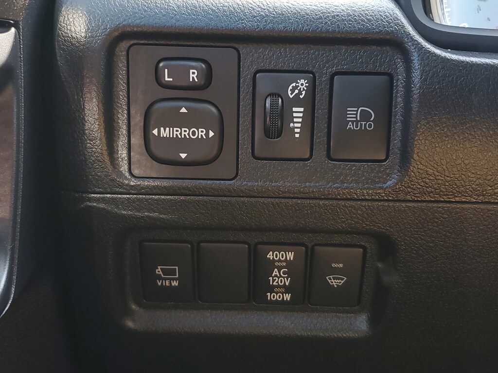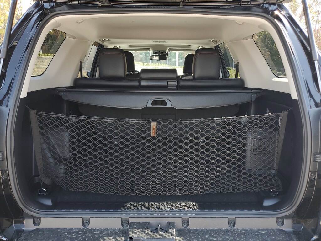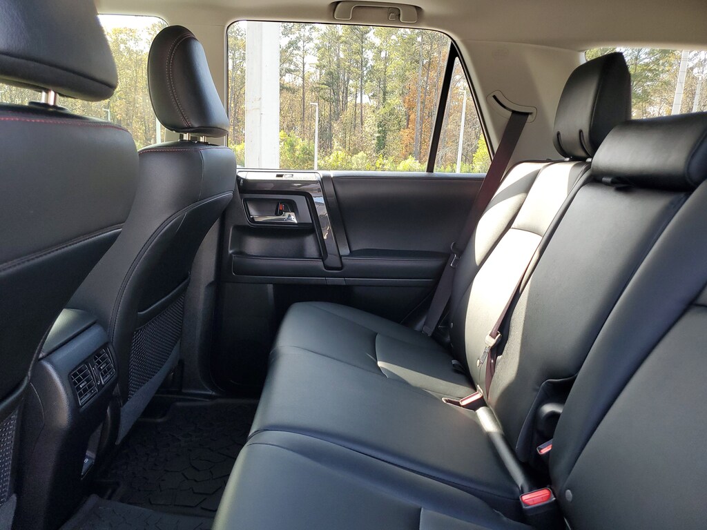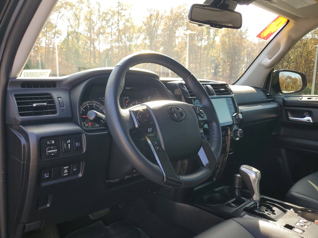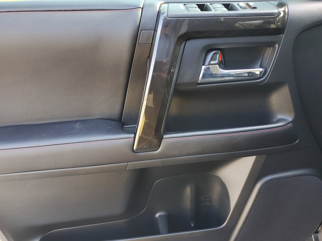 This Vehicle is nicely equipped with the following features: 4WD, 15 Speakers, 3.727 Axle Ratio, 4-Wheel Disc Brakes, ABS brakes, Air Conditioning, Alloy wheels, AM/FM radio: SiriusXM, Anti-whiplash front head restraints, Apple CarPlay/Android Auto, Auto High-beam Headlights, Auto-dimming Rear-View mirror, Automatic temperature control, Black Lug Nuts, Brake assist, Bumpers: body-color, Compass, Driver door bin, Driver vanity mirror, Dual front impact airbags, Dual front side impact airbags, Dual Zone Auto Climate Control, Electronic Stability Control, Emergency communication system: Safety Connect (1-year trial), Exterior Parking Camera Rear, Fog Lights, Fox Shocks, Front anti-roll bar, Front Bucket Seats, Front Center Armrest, Front dual zone A/C, Front fog lights, Front reading lights, Front wheel independent suspension, Garage Door Opener, Garage door transmitter: HomeLink, Heated door mirrors, Heated Front Bucket Seats, Heated front seats, Heated Outside Rear-View Mirrors, Heated steering wheel, Illuminated entry, Knee airbag, Leather Shift Knob, Low tire pressure warning, Moonroof w/Tilt Up & Slide, Multi-Terrain Back Monitor, Navigation System, Occupant sensing airbag, Outside temperature display, Overhead airbag, Overhead console, Panic alarm, Passenger door bin, Passenger vanity mirror, Power door mirrors, Power driver seat, Power moonroof, Power passenger seat, Power steering, Power windows, Radio: Premium Audio w/JBL, Rear anti-roll bar, Rear seat center armrest, Rear window defroster, Rear window wiper, Remote keyless entry, Roof rack, Roof Rack, Security system, SofTex Seat Trim, Speed control, Speed-sensing steering, Split folding rear seat, Spoiler, Steering wheel mounted audio controls, Tachometer, Telescoping steering wheel, Tilt steering wheel, Traction control, TRD Pro All Weather Floor Liner, TRD Pro Badging, TRD Pro Exhaust, TRD Shift Knob, Trip computer, Variably intermittent wipers, Wheel Locks, and Wheels: 17 Matte Black Flow-Formed TRD Alloy.