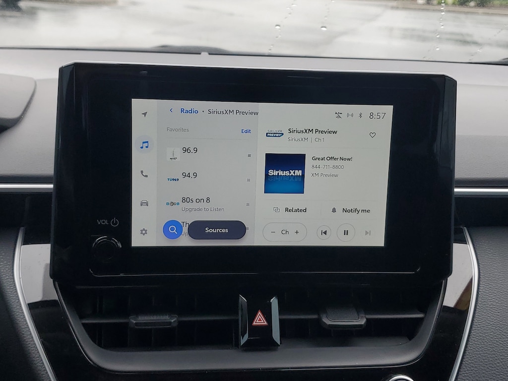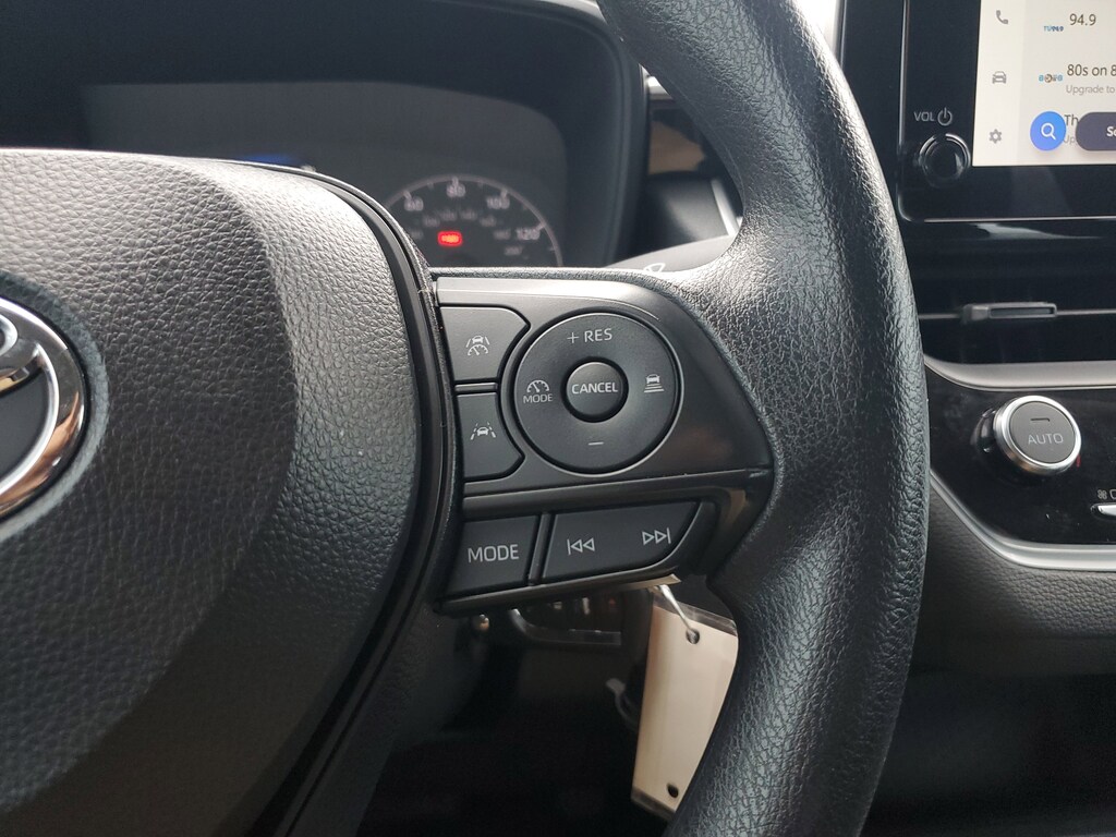 This Vehicle is nicely equipped with the following features: Corolla LE, 4D Sedan, 2.0L I4 DOHC 16V, CVT, FWD, Ice Cap, Black w/Fabric Seat Trim, 16 Steel Wheels w/Covers, 4-Wheel Disc Brakes, 6 Speakers, ABS brakes, Air Conditioning, AM/FM radio: SiriusXM, Auto High-beam Headlights, Automatic temperature control, Brake assist, Bumpers: body-color, Delay-off headlights, Driver door bin, Driver vanity mirror, Dual front impact airbags, Dual front side impact airbags, Electronic Stability Control, Emergency communication system: Safety Connect (up to 10-year trial subscription), Exterior Parking Camera Rear, Fabric Seat Trim, Front anti-roll bar, Front Bucket Seats, Front Center Armrest, Front reading lights, Front wheel independent suspension, Fully automatic headlights, Illuminated entry, Knee airbag, Low tire pressure warning, Occupant sensing airbag, Outside temperature display, Overhead airbag, Panic alarm, Passenger door bin, Passenger vanity mirror, Power door mirrors, Power steering, Power windows, Radio data system, Radio: 8 Toyota Audio Multimedia, Rear anti-roll bar, Rear seat center armrest, Rear side impact airbag, Rear window defroster, Remote keyless entry, Speed control, Split folding rear seat, Steering wheel mounted audio controls, Tachometer, Telescoping steering wheel, Tilt steering wheel, Traction control, and Trip computer.