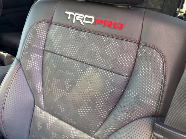 This vehicle comes equipped with: Tow Technology Package, V6 Hybrid, 10-Speed Automatic, 4WD, 14 Speakers, 3.31 Axle Ratio, 3rd row seats: split-bench, 4-Wheel Disc Brakes, ABS brakes, Air Conditioning, Alloy wheels, AM/FM radio: SiriusXM, Anti-whiplash front head restraints, Apple CarPlay/Android Auto, Auto High-beam Headlights, Auto-dimming door mirrors, Auto-dimming Rear-View mirror, Automatic temperature control, Brake assist, Bumpers: body-color, Cast Aluminum Step & Step Cover, Compass, Delay-off headlights, Driver door bin, Driver vanity mirror, Dual front impact airbags, Dual front side impact airbags, Electronic Stability Control, Emergency communication system: Safety Connect (10-year trial), Exterior Parking Camera Rear, Front anti-roll bar, Front Bucket Seats, Front Center Armrest w/Storage, Front dual zone A/C, Front fog lights, Front reading lights, Front wheel independent suspension, Fully automatic headlights, Garage door transmitter: HomeLink, Headlight cleaning, Heated & Ventilated Front Seats, Heated door mirrors, Heated front seats, Heated steering wheel, Illuminated entry, JBL 14 Speakers, Knee airbag, Leather Shift Knob, Leather steering wheel, Low tire pressure warning, Memory seat, Navigation system: Drive Connect (1 year trial) includes Cloud Navigation with real time traffic and Google POI, Occupant sensing airbag, Outside temperature display, Overhead airbag, Overhead console, Panic alarm, Passenger door bin, Passenger vanity mirror, Power door mirrors, Power driver seat, Power moonroof, Power passenger seat, Power steering, Power windows, Premium audio system: JBL, Pro High Grade Full LED Headlamps, Radio: JBL Premium Audio System, Rear air conditioning, Rear reading lights, Rear seat center armrest, Rear window defroster, Rear window wiper, Reclining 3rd row seat, Remote keyless entry, Security system, Speed control, Speed-sensing steering, Split folding rear seat, Spoiler, Sport steering wheel, Steering wheel mounted audio controls, Tachometer, Telescoping steering wheel, Tilt steering wheel, Traction control, TRD Pro Leather-Trimmed Steering Wheel, TRD Pro LED Light Bar, TRD Pro SofTex Seat Trim, TRD Pro Under Cover & Protector, Trip computer, Turn signal indicator mirrors, Variably intermittent wipers, Ventilated front seats, Voltmeter, Wheels: 20 Machined-Finish Alloy, and Wireless Smartphone Charger.