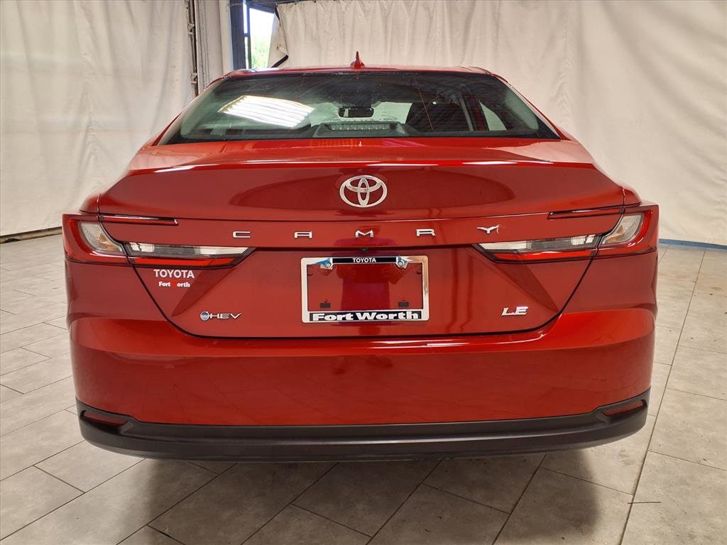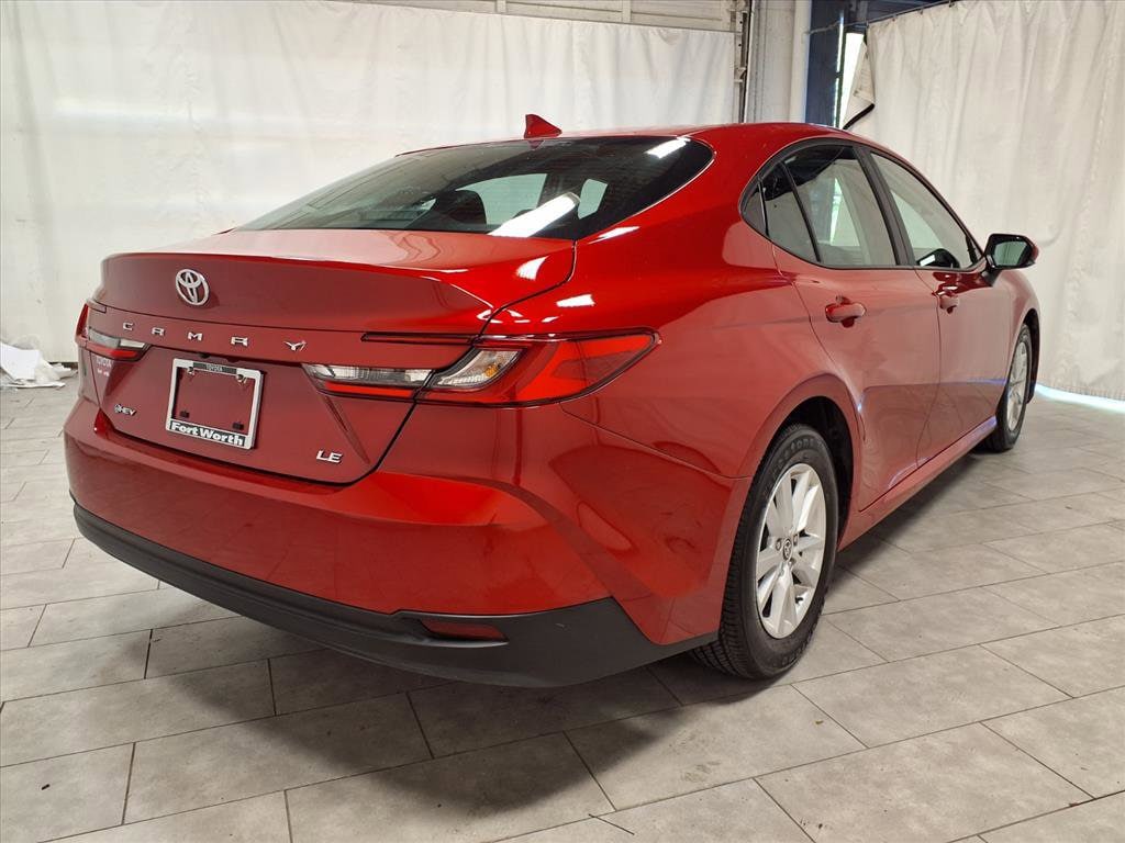 Supersonic Red 2025 Toyota Camry LE FWD eCVT 2.5L 4-Cylinder 16V DOHC 2.5L 4-Cylinder 16V DOHC, Black Cloth.