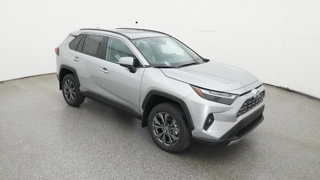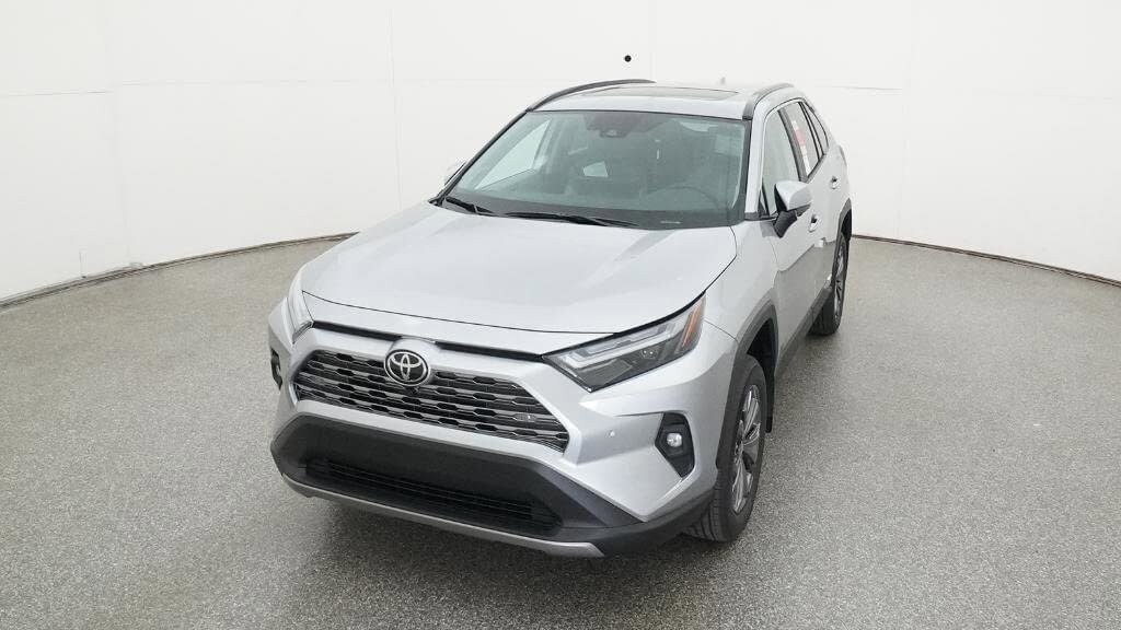41/38 City/Highway MPG 2025 Toyota RAV4 Hybrid 2.5L 4-Cylinder. BLUETOOTH, BACKUP CAMERA, APPLE CARPLAY. This vehicle also comes equipped with: 2.5L 4-Cylinder, 11 Speakers, 4-Wheel Disc Brakes, ABS brakes, Air Conditioning, Alloy wheels, AM/FM radio: SiriusXM, Auto High-beam Headlights, Auto-dimming Rear-View mirror, Automatic temperature control, Brake assist, Bumpers: body-color, Delay-off headlights, Driver door bin, Driver vanity mirror, Dual front impact airbags, Dual front side impact airbags, Electronic Stability Control, Emergency communication system: Safety Connect (1-year trial), Exterior Parking Camera Rear, Four wheel independent suspension, Front anti-roll bar, Front Bucket Seats, Front Center Armrest, Front dual zone A/C, Front fog lights, Front reading lights, Fully automatic headlights, Garage door transmitter: HomeLink, Heated door mirrors, Heated front seats, Heated/Ventilated Front Bucket Seats, Illuminated entry, JBL Audio System, Knee airbag, Leather Shift Knob, Leather steering wheel, Low tire pressure warning, Memory seat, Occupant sensing airbag, Outside temperature display, Overhead airbag, Overhead console, Panic alarm, Passenger door bin, Passenger vanity mirror, Power door mirrors, Power driver seat, Power Liftgate, Power moonroof, Power passenger seat, Power steering, Power windows, Radio data system, Rear anti-roll bar, Rear seat center armrest, Rear window defroster, Rear window wiper, Remote keyless entry, Security system, SofTex Seat Trim, Speed control, Speed-sensing steering, Split folding rear seat, Spoiler, Steering wheel mounted audio controls, Telescoping steering wheel, Tilt steering wheel, Traction control, Trip computer, Turn signal indicator mirrors, Variably intermittent wipers, Ventilated front seats, and Wheels: 18 x 7.0J Silver Aluminum Alloy.
