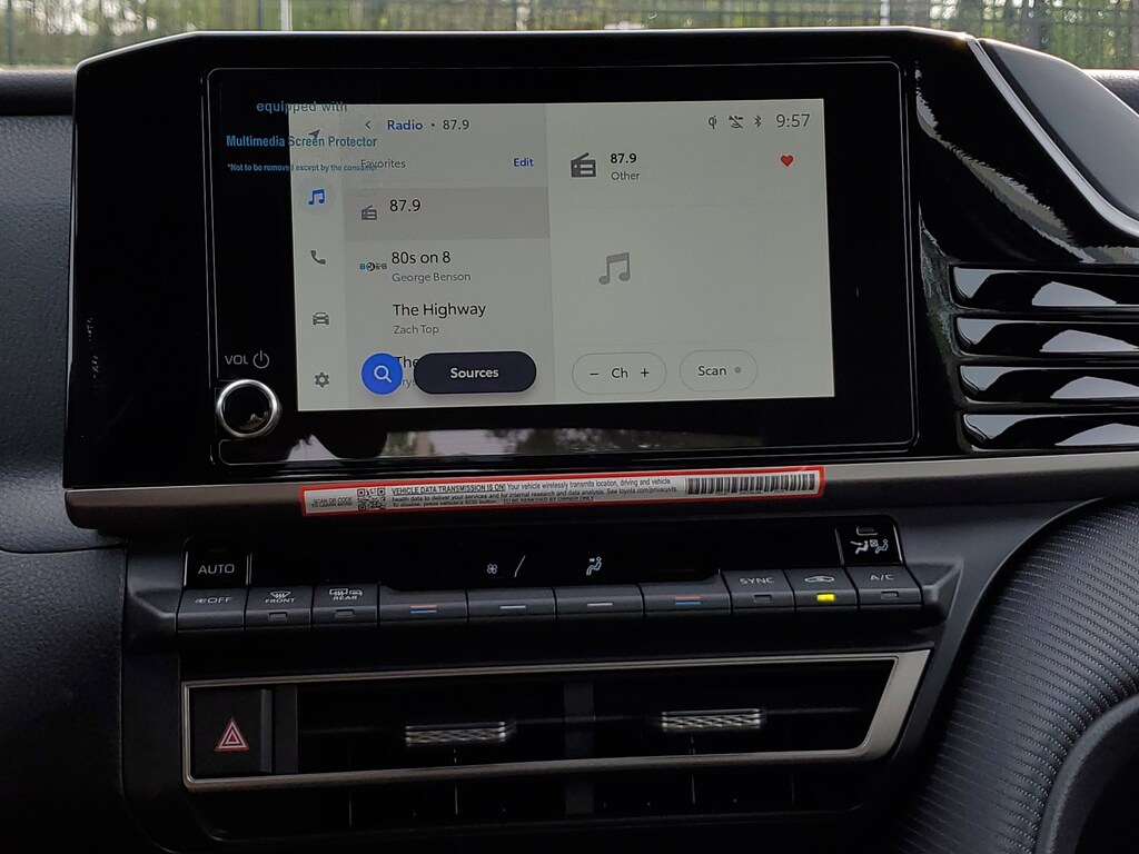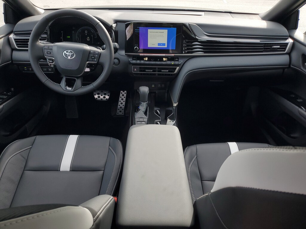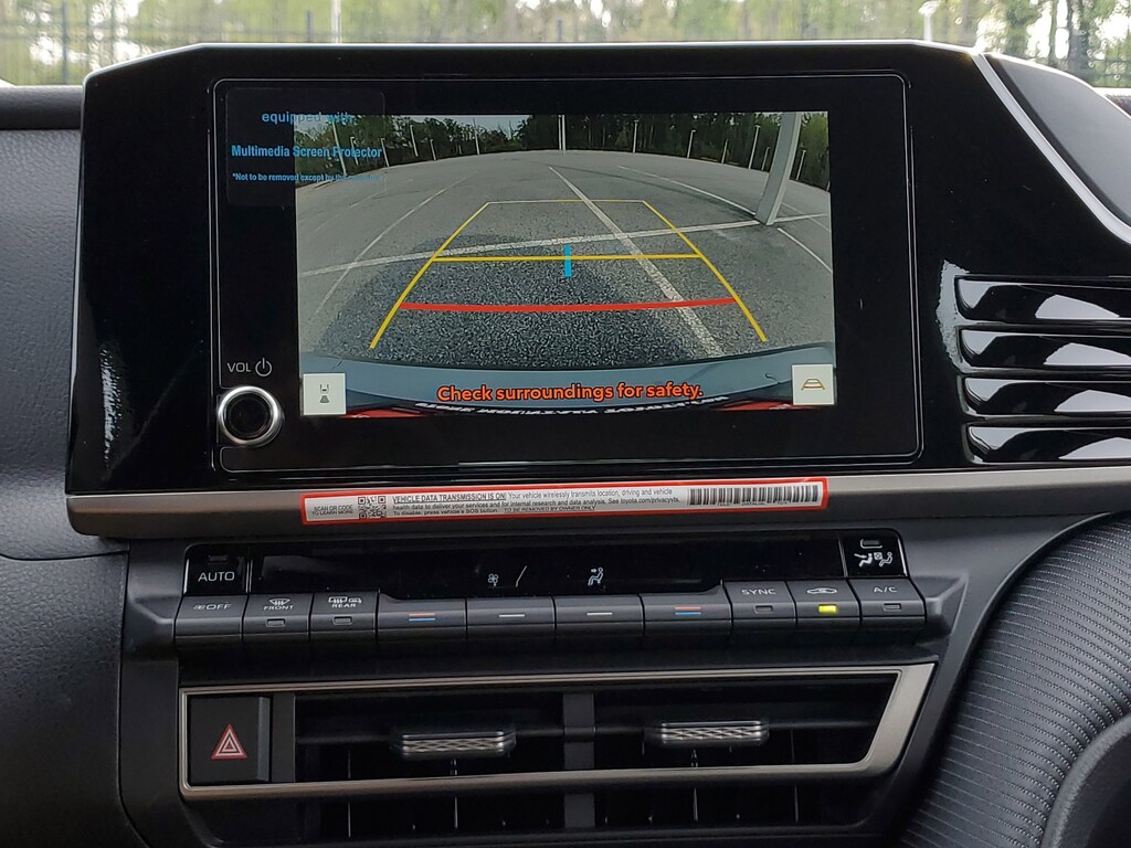 This Vehicle is nicely equipped with the following features: Black w/SofTex and Fabric Seat Trim, ABS brakes, Active Cruise Control, Alloy wheels, Electronic Stability Control, Front dual zone A/C, Heated door mirrors, Illuminated entry, Low tire pressure warning, Remote keyless entry, Traction control, 4-Wheel Disc Brakes, 6 Speakers, Air Conditioning, AM/FM radio: SiriusXM, Apple CarPlay/Android Auto, Auto High-beam Headlights, Automatic temperature control, Brake assist, Bumpers: body-color, Delay-off headlights, Driver door bin, Driver vanity mirror, Dual front impact airbags, Dual front side impact airbags, Emergency communication system: Safety Connect (5-year trial), Exterior Parking Camera Rear, Four wheel independent suspension, Front anti-roll bar, Front Bucket Seats, Front Center Armrest, Front reading lights, Front Seats, Fully automatic headlights, Knee airbag, Leather Shift Knob, Leather steering wheel, Occupant sensing airbag, Outside temperature display, Overhead airbag, Overhead console, Panic alarm, Passenger door bin, Passenger vanity mirror, Power door mirrors, Power driver seat, Power steering, Power windows, Radio data system, Radio: 8 Toyota Audio Multimedia, Rear anti-roll bar, Rear reading lights, Rear seat center armrest, Rear window defroster, Security system, SofTex and Fabric Seat Trim, Speed control, Speed-sensing steering, Split folding rear seat, Spoiler, Steering wheel mounted audio controls, Telescoping steering wheel, Tilt steering wheel, Trip computer, Turn signal indicator mirrors, Variably intermittent wipers, and Wheels: 18 Multi-Spoke Black-Finished Alloy.