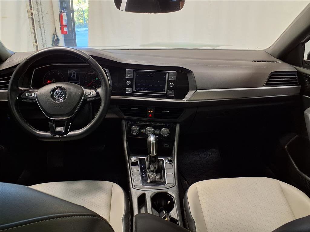 Pure White 2019 Volkswagen Jetta R-Line FWD 8-Speed Automatic with Tiptronic 1.4L TSI Storm Gray Premium Synthetic.