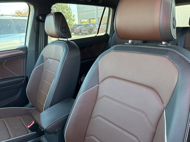 This vehicle comes equipped with: AWD, 3.33 Axle Ratio, 4-Wheel Disc Brakes, 4-Wheel Independent Suspension, 8 Speakers, ABS brakes, Air Conditioning, Alloy wheels, AM/FM radio: SiriusXM with 360L, Auto High-beam Headlights, Auto-dimming Rear-View mirror, Automatic temperature control, Brake assist, Bumpers: body-color, Compass, Delay-off headlights, Driver door bin, Driver vanity mirror, Dual front impact airbags, Dual front side impact airbags, Electronic Stability Control, Emergency communication system: Car-Net, Four wheel independent suspension, Front anti-roll bar, Front Bucket Seats, Front Center Armrest, Front dual zone A/C, Front fog lights, Front reading lights, Fully automatic headlights, Heated door mirrors, Heated front seats, Heated steering wheel, Heated/Ventilated Front Comfort Sport Seats, Illuminated entry, Leather Shift Knob, Leather steering wheel, Low tire pressure warning, Memory seat, Navigation system: VW Car-Net Guide & Inform, Occupant sensing airbag, Outside temperature display, Overhead airbag, Overhead console, Panic alarm, Passenger door bin, Passenger vanity mirror, Perforated Vienna Leather Seating Surfaces, Power door mirrors, Power driver seat, Power Liftgate, Power moonroof, Power passenger seat, Power steering, Power windows, Radio data system, Radio: MIB3 Discover Media AM/FM/HD, Rain sensing wipers, Rear anti-roll bar, Rear reading lights, Rear seat center armrest, Rear window defroster, Rear window wiper, Remote keyless entry, Roof rack: rails only, Security system, Speed control, Speed-sensing steering, Split folding rear seat, Spoiler, Sport steering wheel, Steering wheel mounted audio controls, Tachometer, Telescoping steering wheel, Tilt steering wheel, Traction control, Trip computer, Turn signal indicator mirrors, Variably intermittent wipers, Ventilated front seats, and Wheels: 20 Machined Black Alloy.