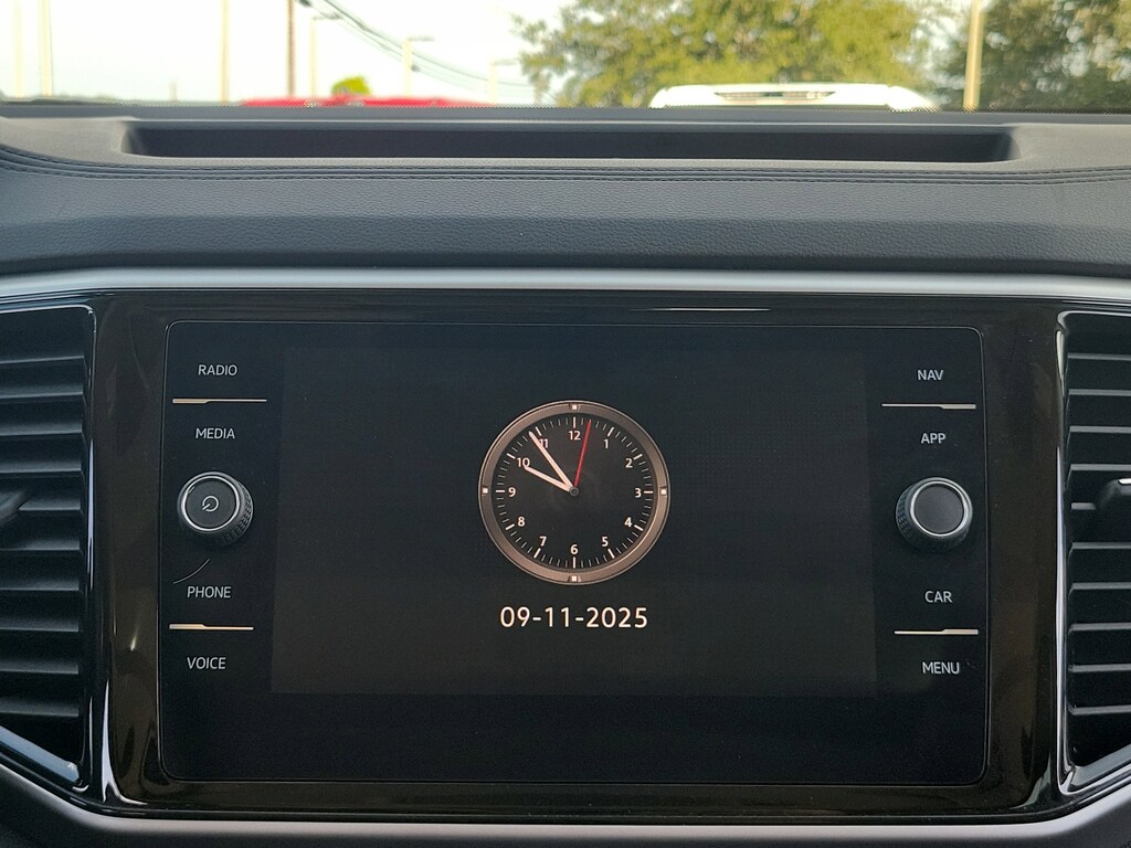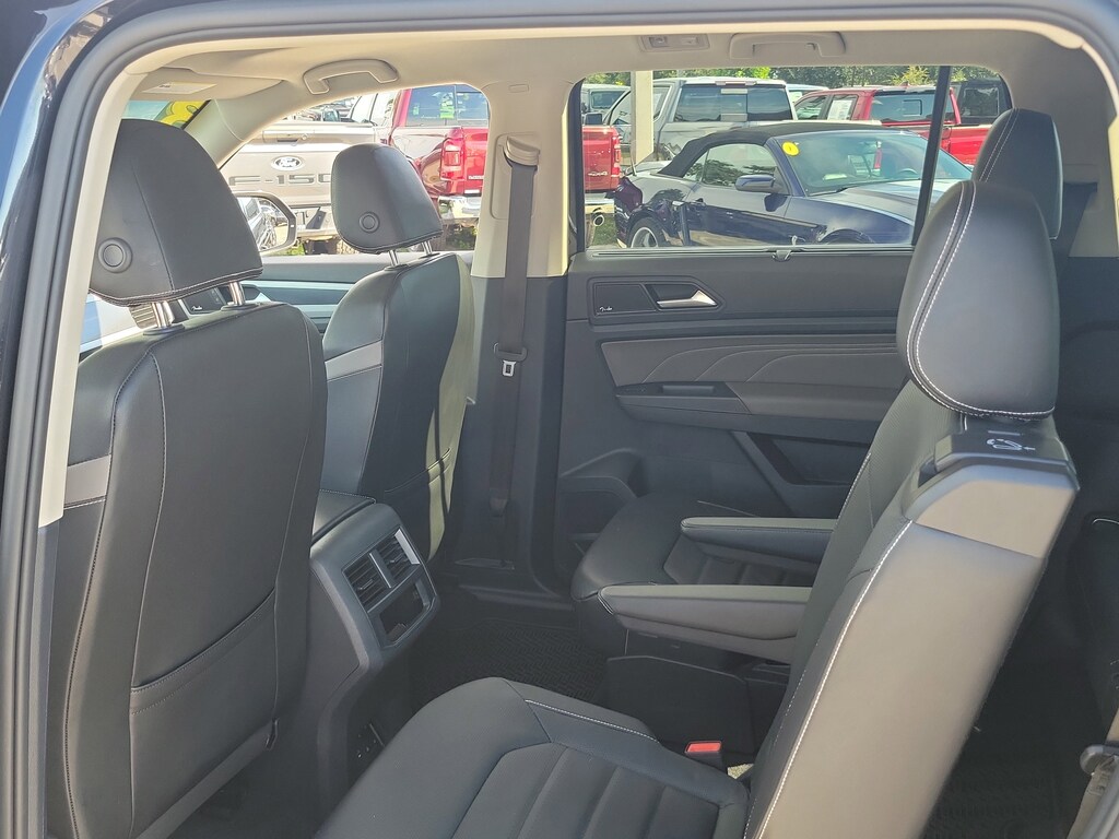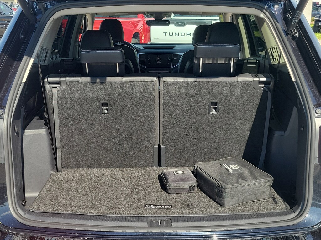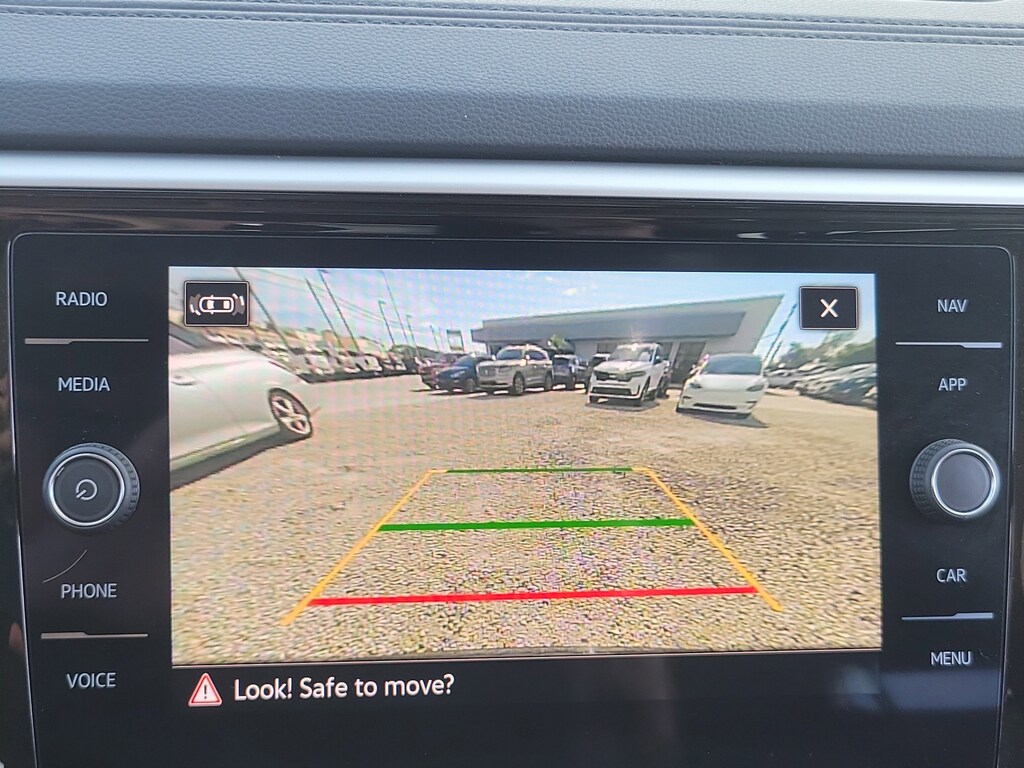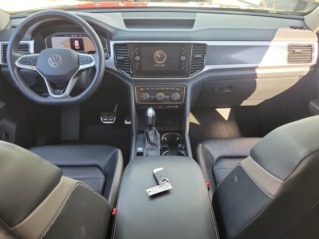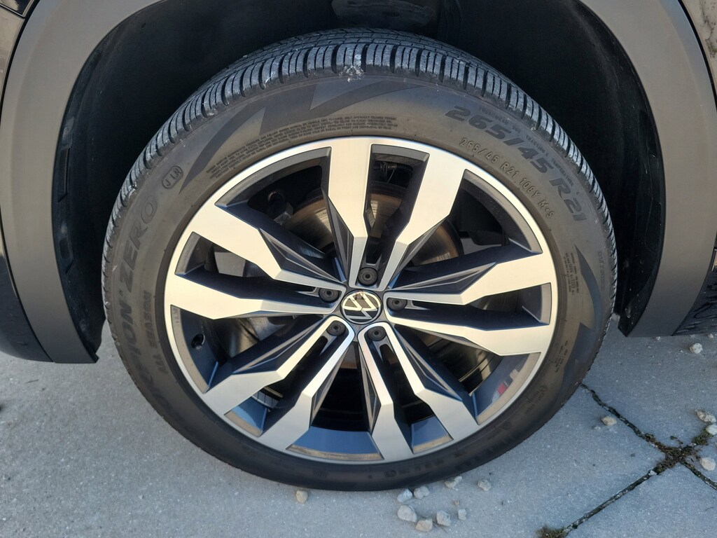 This Vehicle comes equipped with: 12 Speakers, 2nd-Row Dual Captain's Chairs, 3.60 Axle Ratio, 3rd row seats: split-bench, 4-Wheel Disc Brakes, ABS brakes, Air Conditioning, Alloy wheels, AM/FM radio: SiriusXM with 360L, Auto High-beam Headlights, Auto-Dimming Rear-View Mirror, Auto-dimming Rear-View mirror, Automatic temperature control, Brake assist, Bumpers: body-color, Compass, Delay-off headlights, Driver door bin, Driver vanity mirror, Dual front impact airbags, Dual front side impact airbags, Electronic Stability Control, Emergency communication system: VW Car-Net Safe & Secure 5-year, First Aid Kit, Four wheel independent suspension, Front anti-roll bar, Front Bucket Seats, Front Center Armrest, Front dual zone A/C, Front fog lights, Front reading lights, Fully automatic headlights, Heated door mirrors, Heated front seats, Heated rear seats, Heated steering wheel, Heavy Duty Trunk Liner w/VW CarGo Blocks, Htd/Actively Ventilated Comfort Front Sport Seats, Illuminated entry, Leather Shift Knob, Low tire pressure warning, Memory seat, Navigation System, Occupant sensing airbag, Outside temperature display, Overhead airbag, Overhead console, Panic alarm, Passenger door bin, Passenger vanity mirror, Perforated Vienna Leather Seating Surfaces, Power door mirrors, Power driver seat, Power Liftgate, Power moonroof: Panoramic, Power passenger seat, Power steering, Power windows, Privacy Cover, Radio data system, Radio: MIB3 Discover Media w/8" Touchscreen Nav, Rain sensing wipers, Rear air conditioning, Rear anti-roll bar, Rear audio controls, Rear reading lights, Rear seat center armrest, Rear window defroster, Rear window wiper, Remote keyless entry, Roadside Assistance Kit, Roof Rack Base Carrier Bars (Set of 2), Rubber Mats Kit - Captain's Chairs, Security system, Speed control, Speed-sensing steering, Split folding rear seat, Spoiler, Sport steering wheel, Standard Suspension, Steering wheel mounted audio controls, Tachometer, Telescoping steering wheel, Tilt steering wheel, Traction control, Trip computer, Turn signal indicator mirrors, Variably intermittent wipers, Ventilated front seats, and Wheels: 21" 2-Tone Machined Alloy.