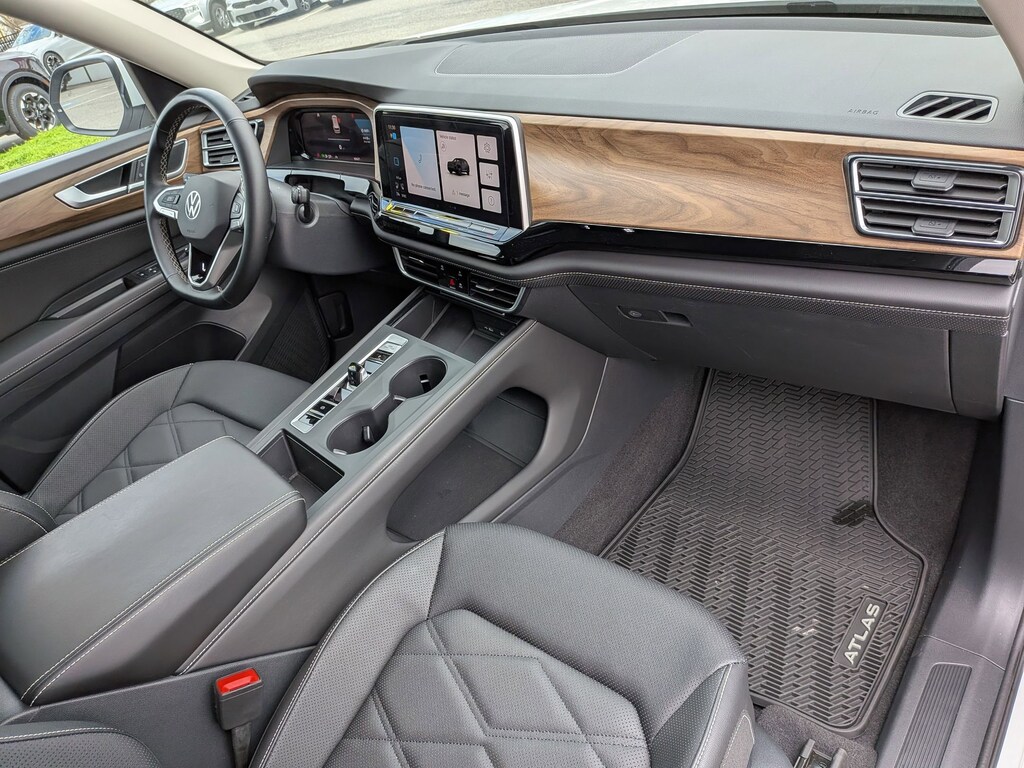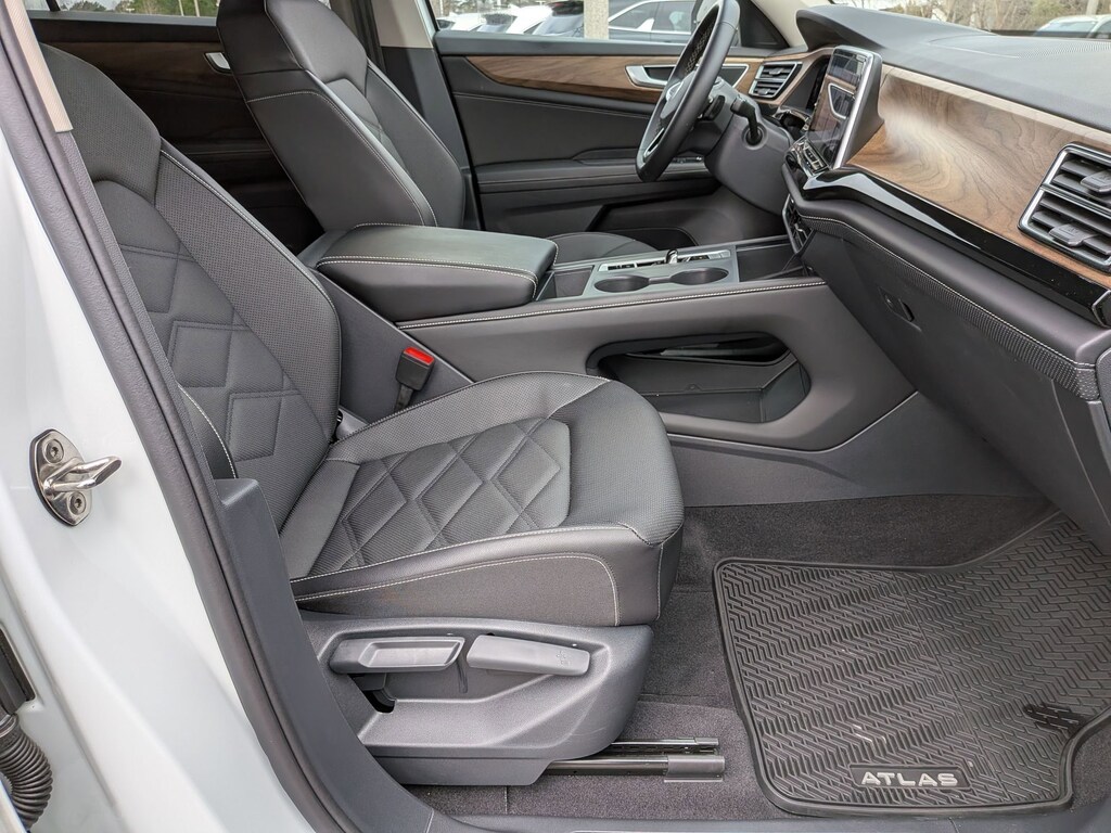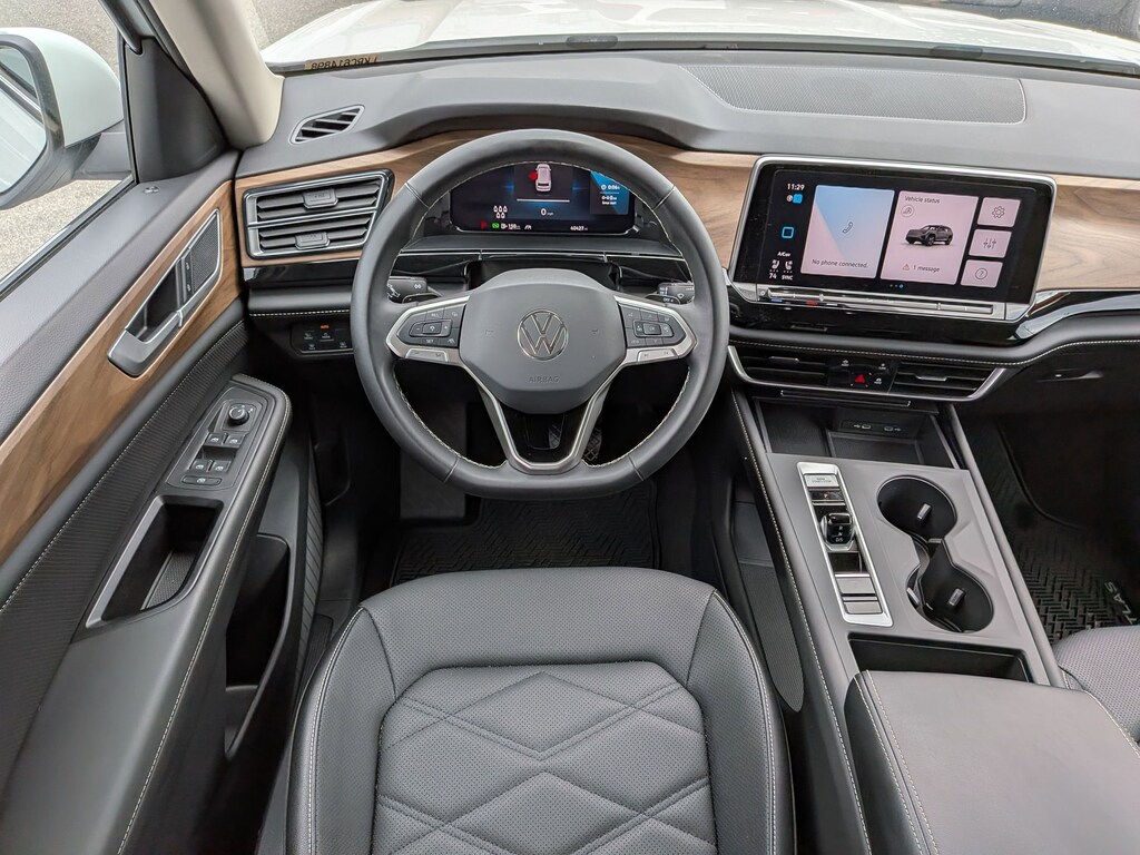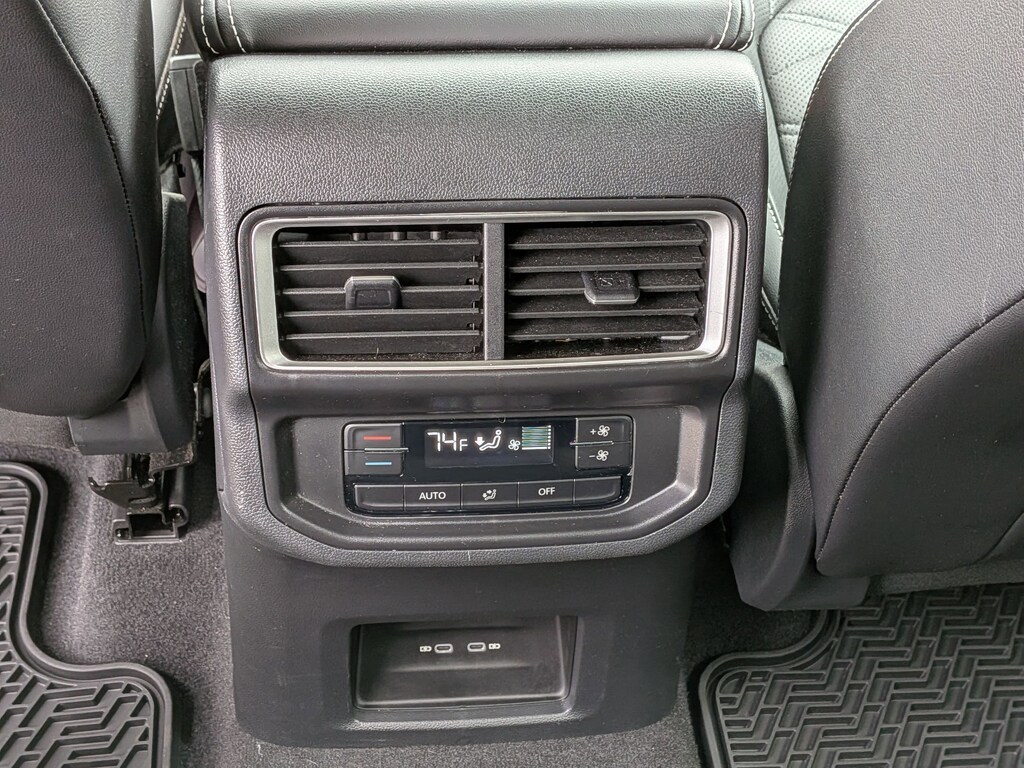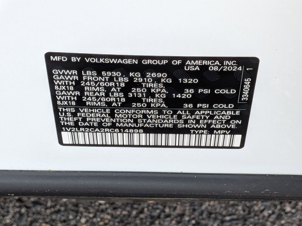 This vehicle comes equipped with : 3.60 Axle Ratio, 3rd row seats: split-bench, 4-Wheel Disc Brakes, 6 Speakers, ABS brakes, Air Conditioning, Alloy wheels, AM/FM radio: SiriusXM with 360L, Auto-dimming Rear-View mirror, Automatic temperature control, Brake assist, Bumpers: body-color, Compass, Delay-off headlights, Driver door bin, Driver vanity mirror, Dual front impact airbags, Dual front side impact airbags, Electronic Stability Control, Emergency communication system: VW Car-Net Safe & Secure 5-year, Exterior Parking Camera Rear, Four wheel independent suspension, Front anti-roll bar, Front Bucket Seats, Front Center Armrest, Front dual zone A/C, Front fog lights, Front reading lights, Fully automatic headlights, Heated door mirrors, Heated front seats, Heated steering wheel, Heated/Actively Ventilated Front Bucket Seats, Illuminated entry, Low tire pressure warning, Occupant sensing airbag, Outside temperature display, Overhead airbag, Overhead console, Panic alarm, Passenger door bin, Passenger vanity mirror, Perforated V-Tex Leatherette Seating Surfaces, Power door mirrors, Power driver seat, Power steering, Power windows, Radio data system, Radio: MIB3 Composition Media, Rain sensing wipers, Rear air conditioning, Rear anti-roll bar, Rear reading lights, Rear seat center armrest, Rear window defroster, Rear window wiper, Remote keyless entry, Security system, Speed control, Speed-sensing steering, Split folding rear seat, Spoiler, Standard Suspension, Steering wheel mounted audio controls, Tachometer, Telescoping steering wheel, Tilt steering wheel, Traction control, Trip computer, Turn signal indicator mirrors, Variably intermittent wipers, Ventilated front seats, and Wheels: 18" 2-Tone Machined Alloy.