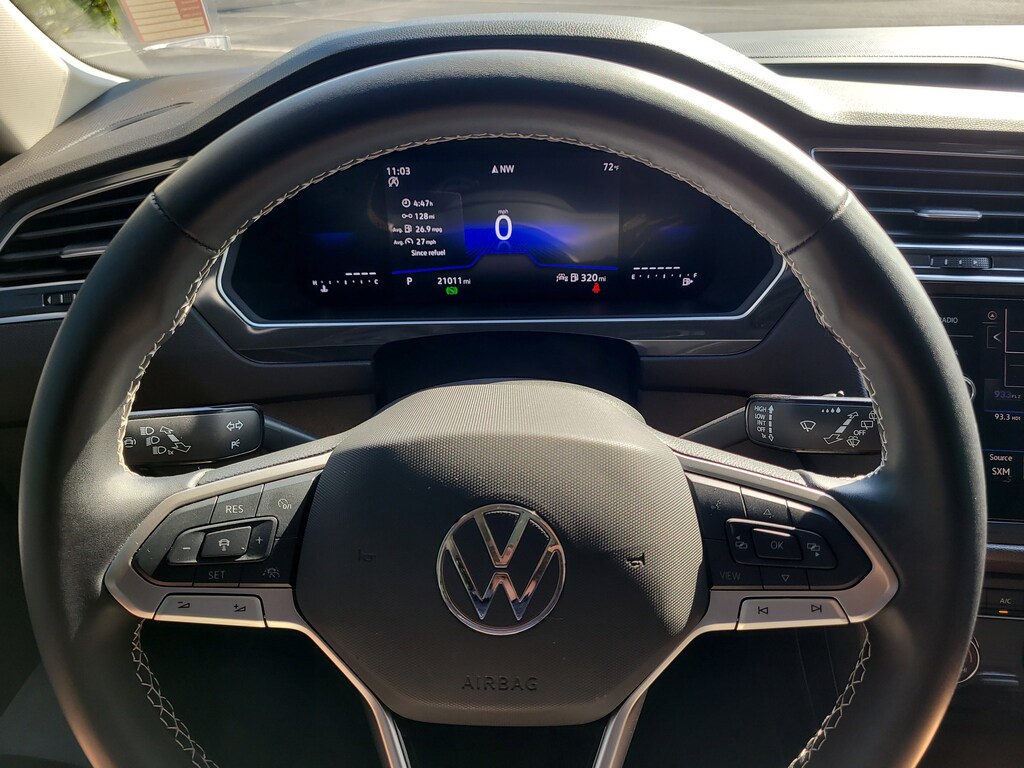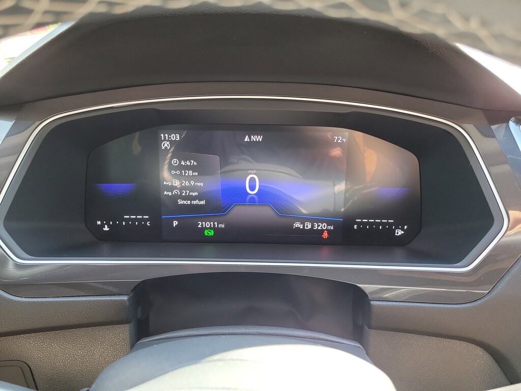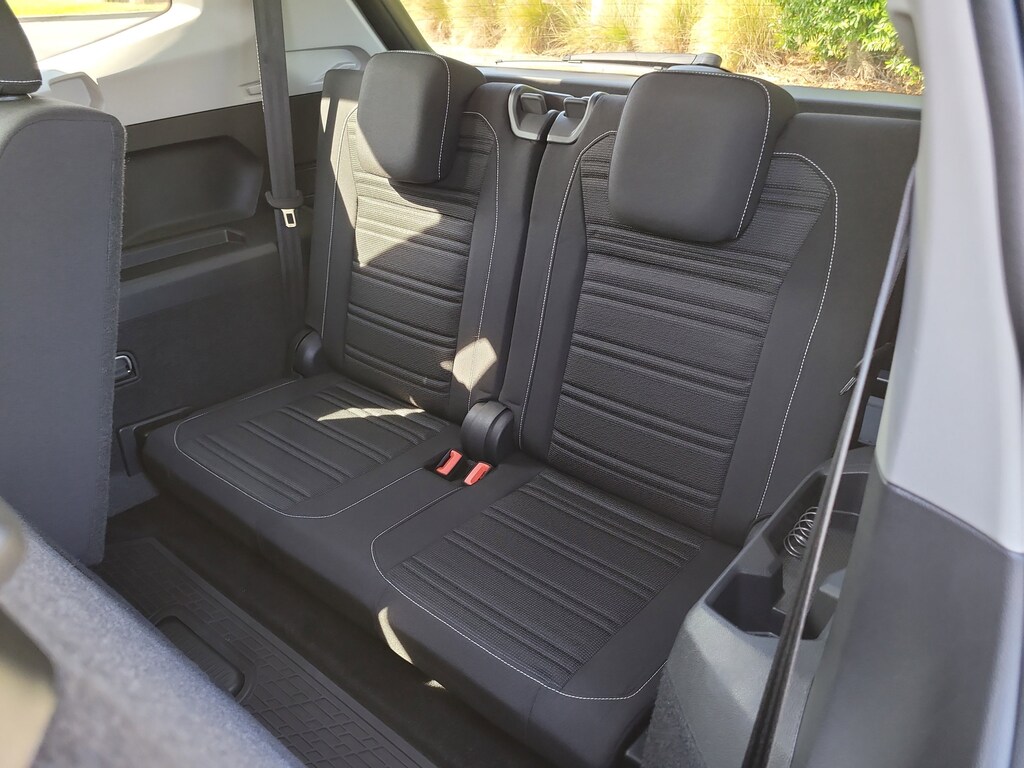 This Vehicle is nicely equipped with the following features: 3.33 Axle Ratio, 3rd row seats: bench, 4-Wheel Disc Brakes, 4-Wheel Independent Suspension, 6 Speakers, ABS brakes, Air Conditioning, Alloy wheels, AM/FM radio, Brake assist, Bumpers: body-color, Cloth Seating Surfaces, Compass, Delay-off headlights, Driver door bin, Driver vanity mirror, Dual front impact airbags, Dual front side impact airbags, Electronic Stability Control, Emergency communication system: VW Car-Net Safe & Secure 5-year, Exterior Parking Camera Rear, Four wheel independent suspension, Front anti-roll bar, Front Bucket Seats, Front Center Armrest, Front reading lights, Fully automatic headlights, Heated door mirrors, Heated Front Seats, Heated front seats, Illuminated entry, Leather Shift Knob, Low tire pressure warning, Occupant sensing airbag, Outside temperature display, Overhead airbag, Overhead console, Panic alarm, Passenger door bin, Passenger vanity mirror, Power door mirrors, Power steering, Power windows, Radio data system, Rain sensing wipers, Rear anti-roll bar, Rear reading lights, Rear seat center armrest, Rear window defroster, Rear window wiper, Remote keyless entry, Speed control, Speed-sensing steering, Split folding rear seat, Spoiler, Steering wheel mounted audio controls, Tachometer, Telescoping steering wheel, Tilt steering wheel, Traction control, Trip computer, Turn signal indicator mirrors, Variably intermittent wipers, and Wheels: 17" 2-Tone Machined Twin 5-Spoke Alloy. 23/30 City/Highway MPG